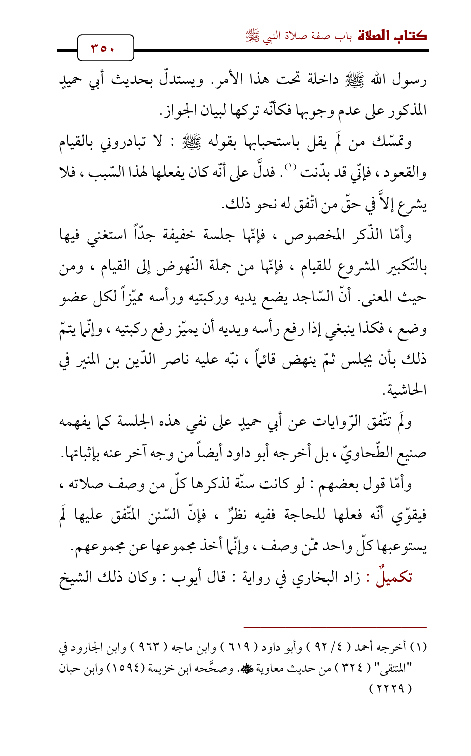 ولَم تتّفق الرّوايات عن أبي حميدٍ على نفي هذه الجلسة كما يفهمه صنيع الطّحاويّ، بل أخرجه أبو داود أيضاً من وجه آخر عنه بإثباتها.