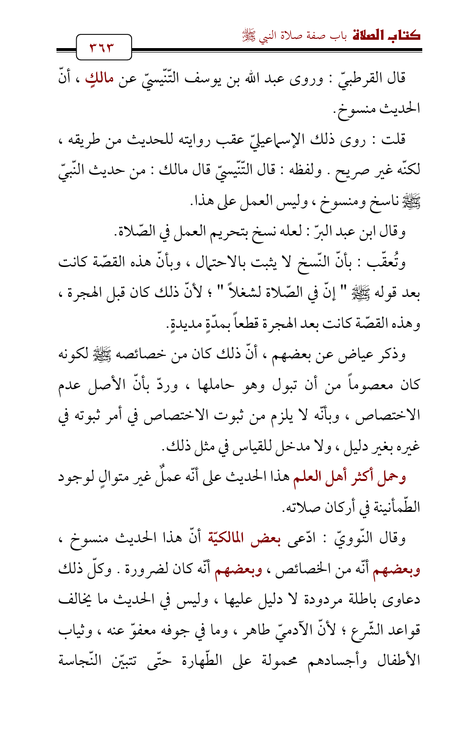 وتُعقّب: بأنّ النّسخ لا يثبت بالاحتمال , وبأنّ هذه القصّة كانت بعد قوله - صلى الله عليه وسلم - " إنّ في الصّلاة لشغلاً "؛ لأنّ ذلك كان قبل الهجرة، وهذه القصّة كانت بعد الهجرة قطعاً بمدّةٍ مديدةٍ.