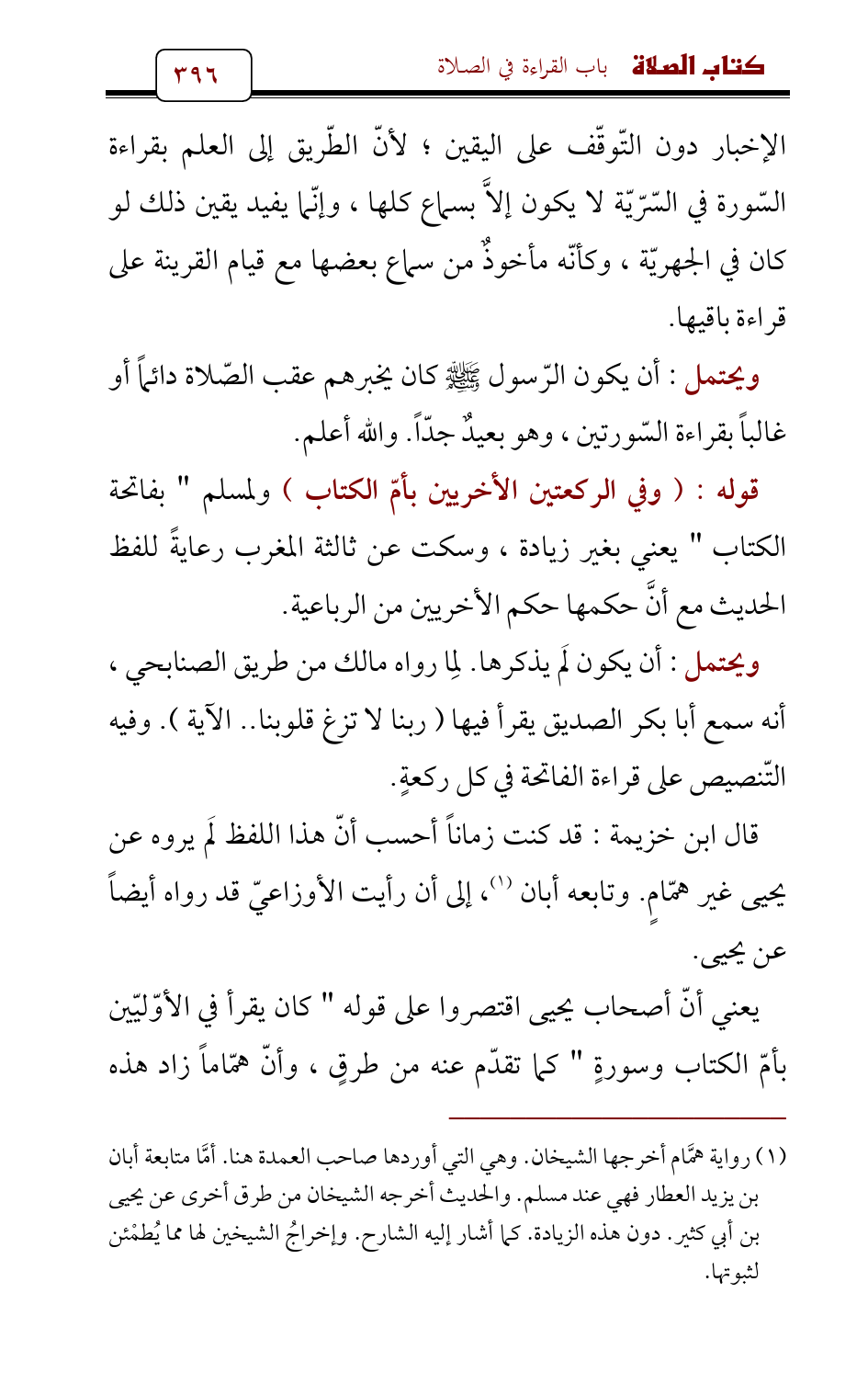 قال ابن خزيمة: قد كنت زماناً أحسب أنّ هذا اللفظ لَم يروه عن يحيى غير همّامٍ. وتابعه أبان (¬1) , إلى أن رأيت الأوزاعيّ قد رواه أيضاً عن يحيى.