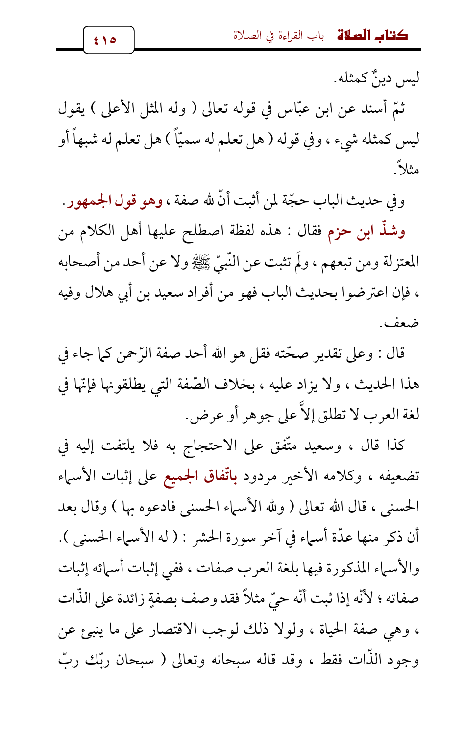 وشذّ ابن حزم فقال: هذه لفظة اصطلح عليها أهل الكلام من المعتزلة ومن تبعهم، ولَم تثبت عن النّبيّ - صلى الله عليه وسلم - ولا عن أحد من أصحابه، فإن اعترضوا بحديث الباب فهو من أفراد سعيد بن أبي هلال وفيه ضعف.