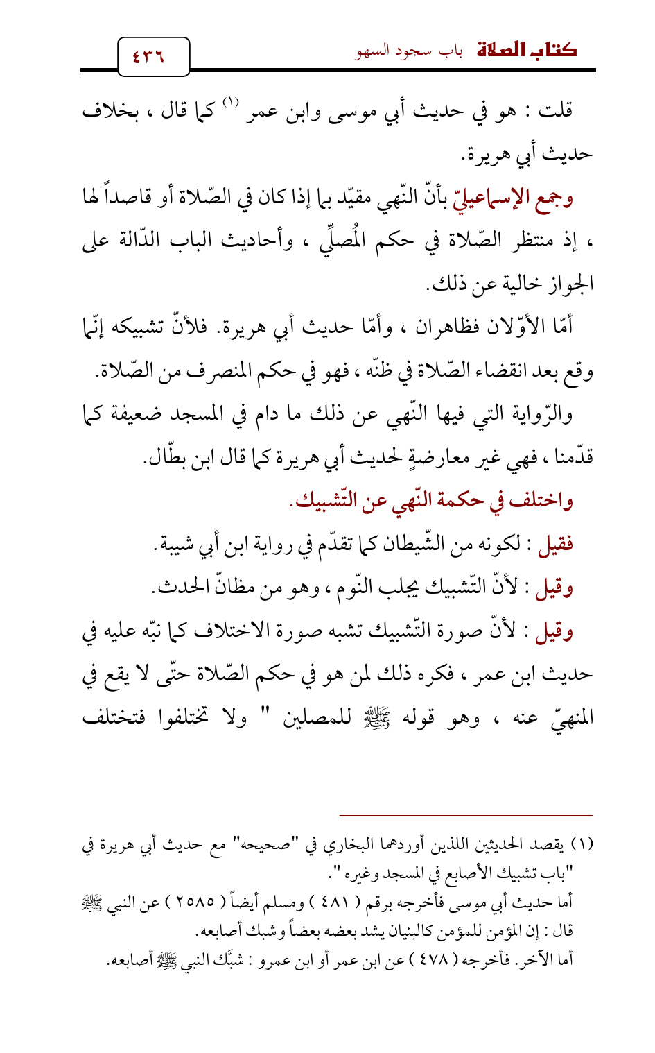 (¬1) يقصد الحديثين اللذين أوردهما البخاري في " صحيحه " مع حديث أبي هريرة في " باب تشبيك الأصابع في المسجد وغيره ".