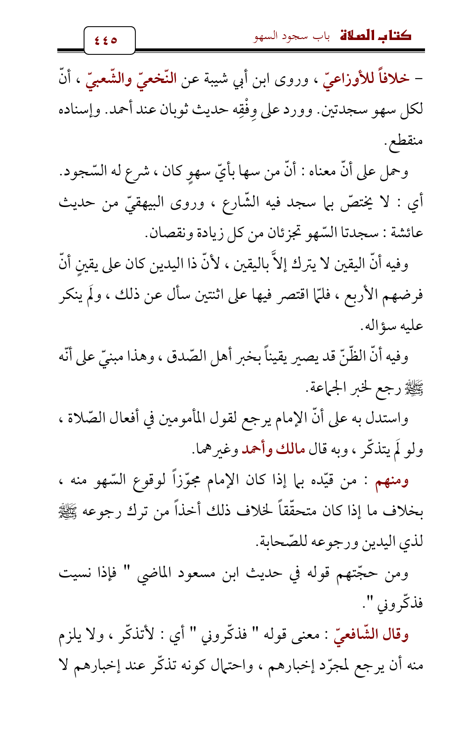 - خلافاً للأوزاعيّ، وروى ابن أبي شيبة عن النّخعيّ والشّعبيّ , أنّ لكل سهو سجدتين. وورد على وِفْقِه حديث ثوبان عند أحمد. وإسناده منقطع.