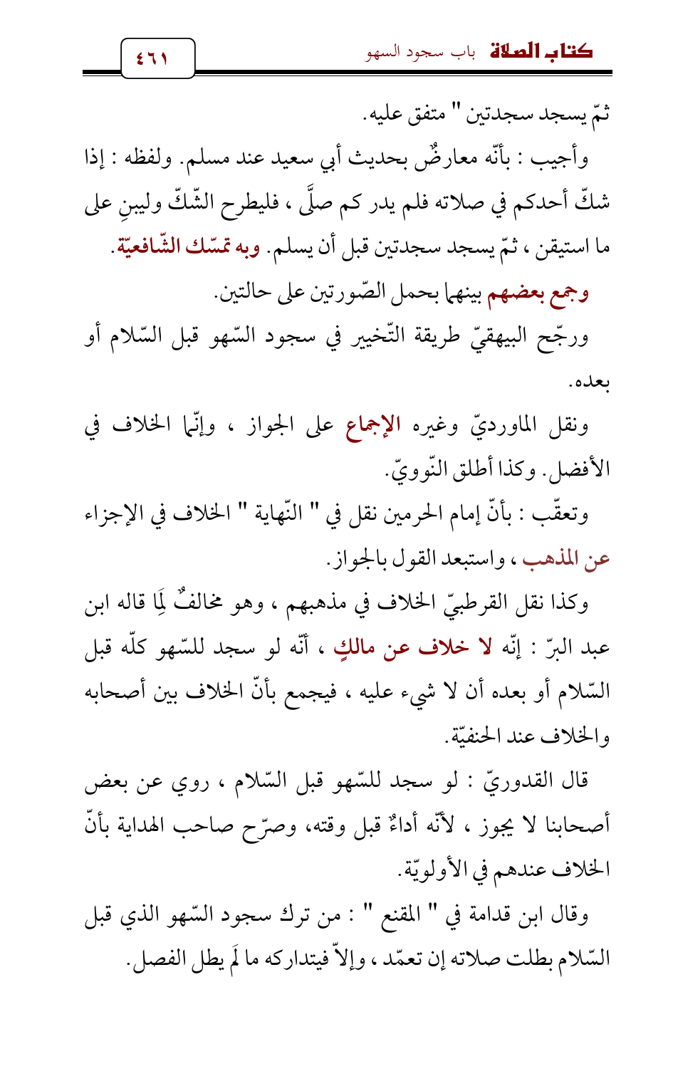 وكذا نقل القرطبيّ الخلاف في مذهبهم، وهو مخالفٌ لِمَا قاله ابن عبد البرّ: إنّه لا خلاف عن مالكٍ , أنّه لو سجد للسّهو كلّه قبل السّلام أو بعده أن لا شيء عليه، فيجمع بأنّ الخلاف بين أصحابه والخلاف عند الحنفيّة.