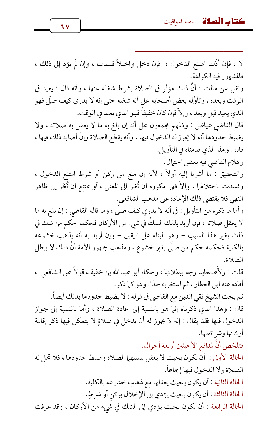 فتلخص أنَّ لمدافع الأخبثين أربعة أحوال.