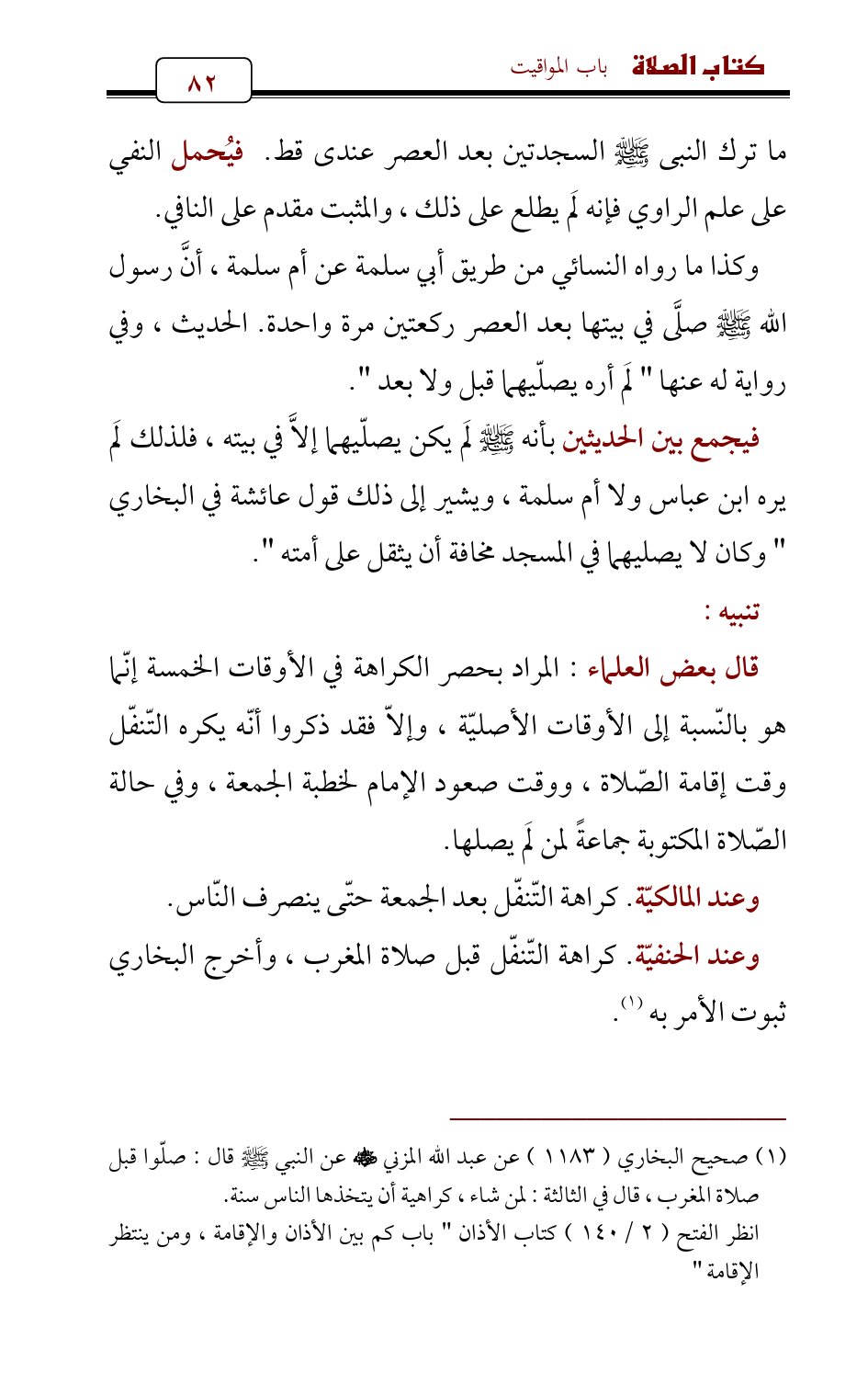 (¬1) صحيح البخاري (1183) عن عبد الله المزني - رضي الله عنه - عن النبي - صلى الله عليه وسلم - قال: صلّوا قبل صلاة المغرب، قال في الثالثة: لمن شاء، كراهية أن يتخذها الناس سنة.