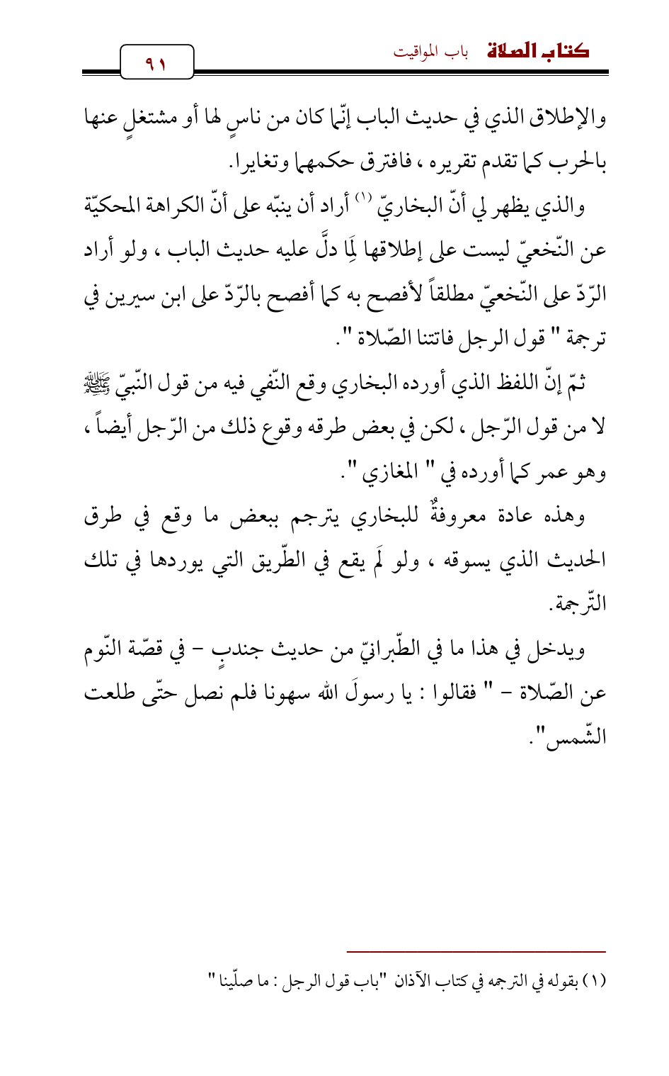 (¬1) بقوله في الترجمه في كتاب الآذان " باب قول الرجل: ما صلّينا "