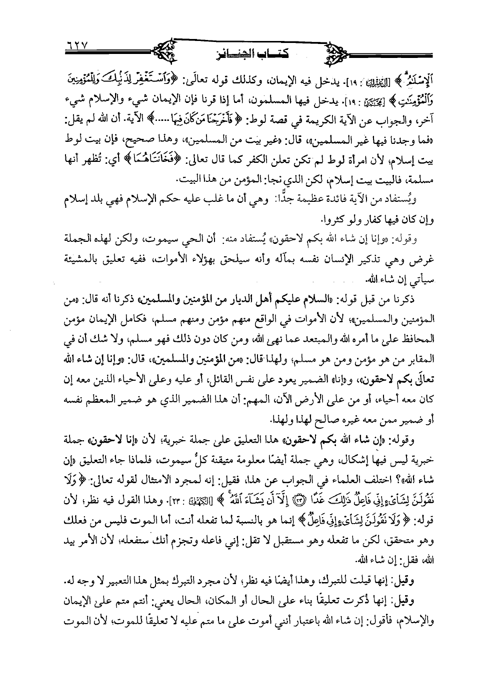 وقوله: "وإنا إن شاء الله بكم لاحقون" يستفاد منه: أن الحي سيموت، ولكن لهذه الجملة غرض وهي تذكير الإنسان نفسه بمآله وأنه سيلحق بهؤلاء الأموات، ففيه تعليق بالمشيئة سيأتي إن شاء الله.