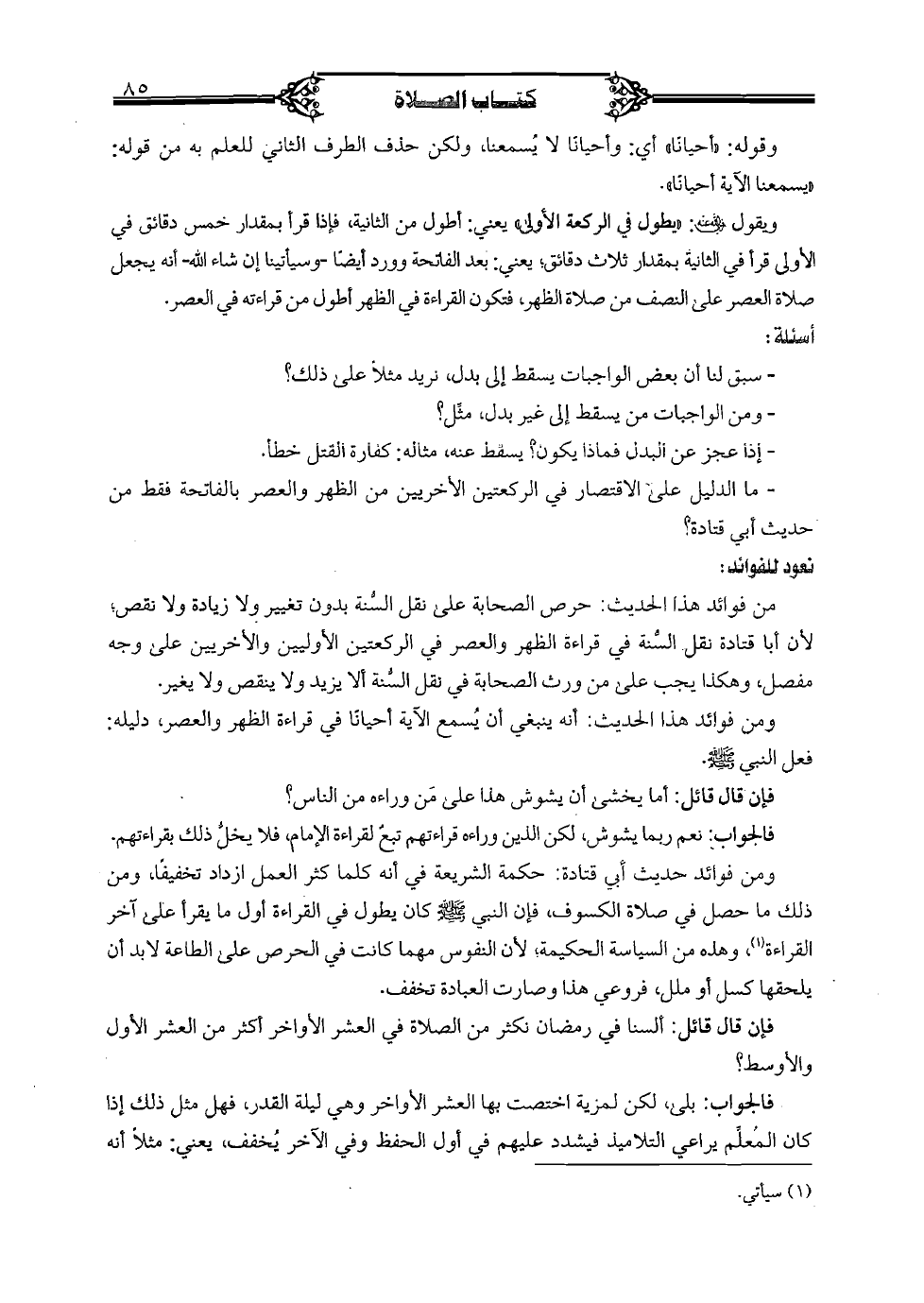 وقوله: "أحيانًا" أي: وأحيانًا لا يسمعنا، ولكن حذف الطرف الثاني للعلم به من قوله: "يسمعنا الآية أحيانًا".