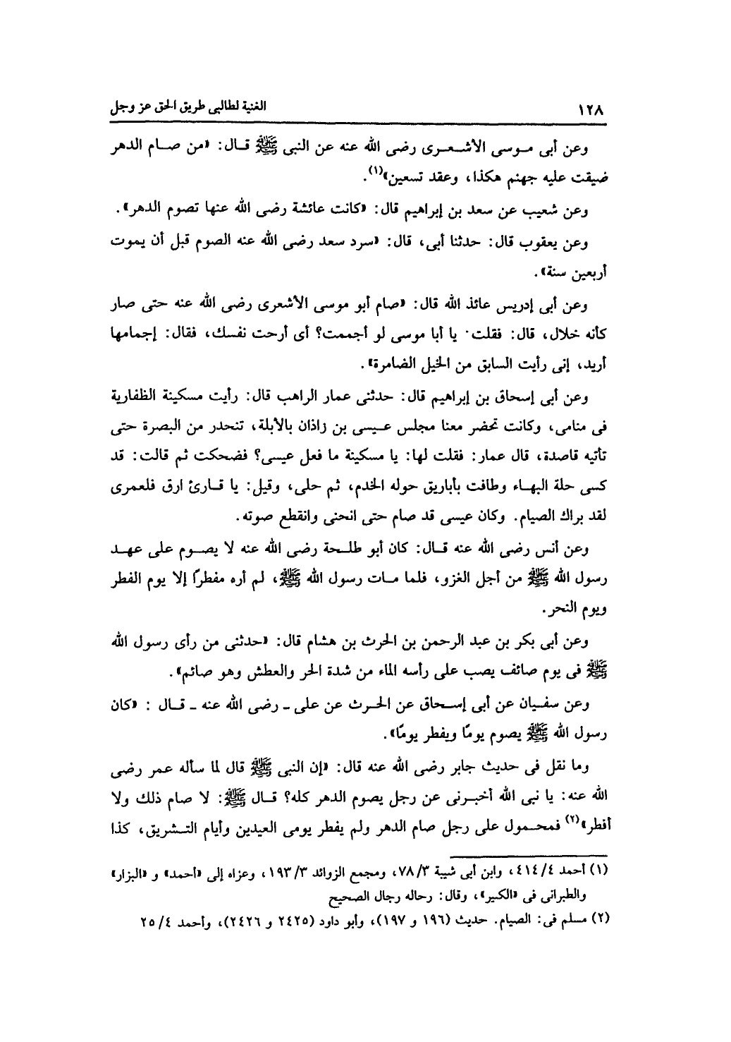 وعن سفيان عن أبي إسحاق عن الحرث عن علي رضي الله عنه قال: "كان رسول الله -صلى الله عليه وسلم- يصوم يوماً ويفطر يوماً"