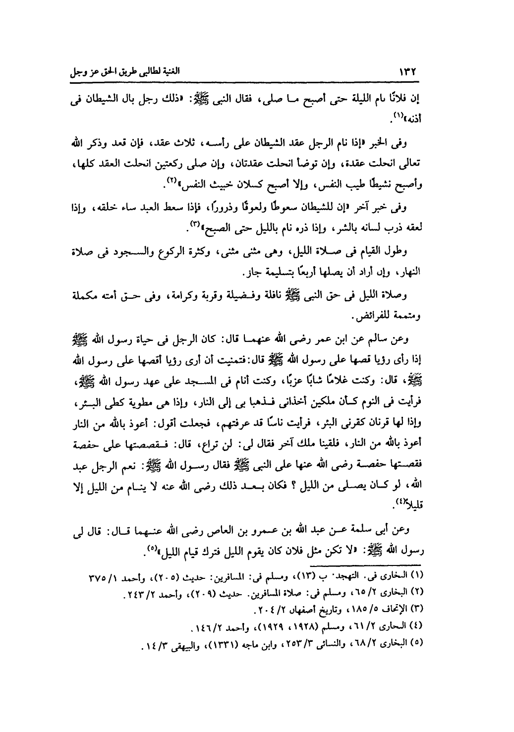 وعن أبي سلمة عن عبد الله بن عمرو بن العاص رضي الله عنهما قال: قال لي رسول الله -صلى الله عليه وسلم-: "لا تكن مثل فلان كان يقوم الليل فترك قيام الليل".