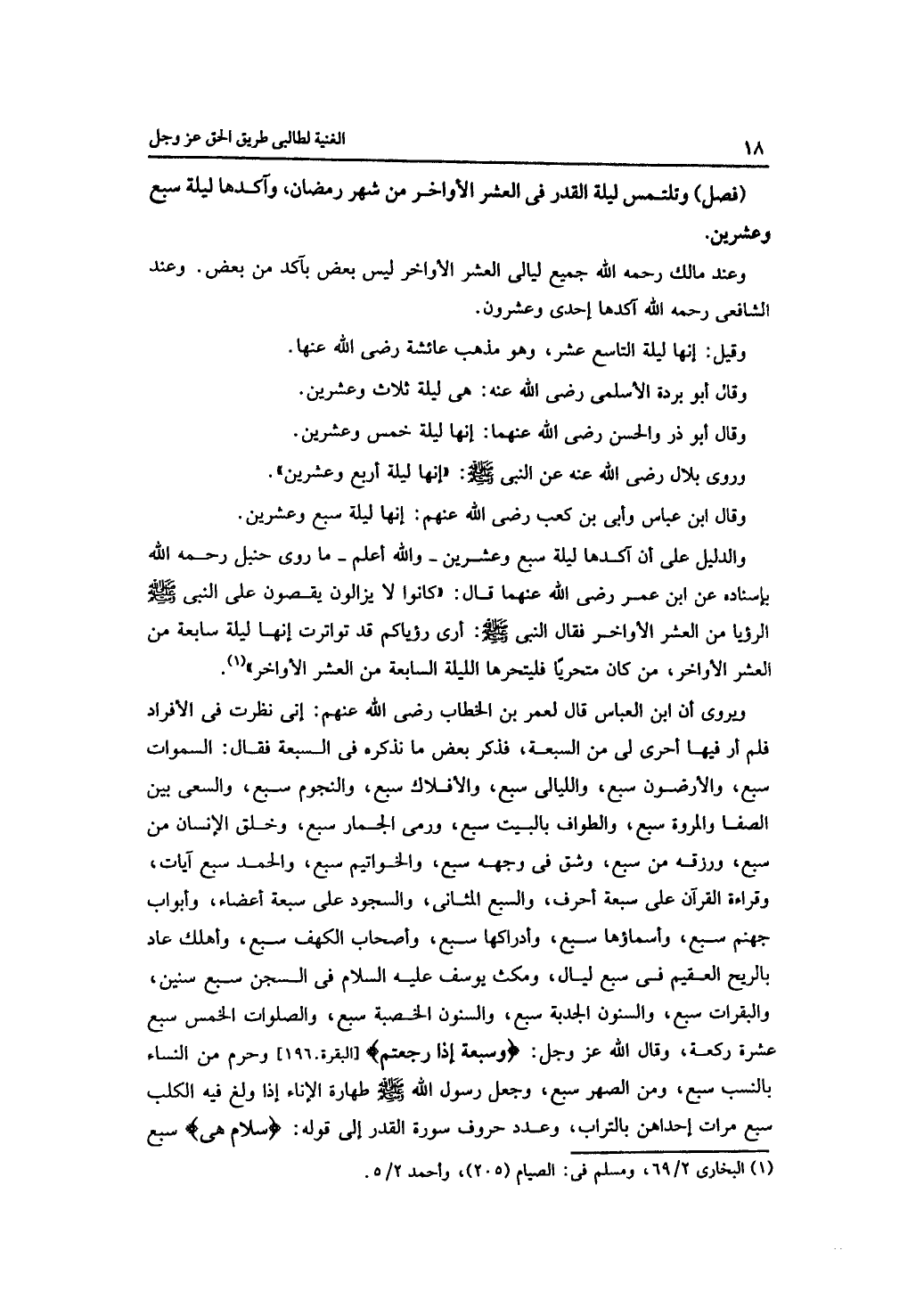 والدليل على أن آكدها ليلة سبع وعشرين -والله أعلم -ما روى حنبل -رحمه الله -بإسناده عن ابن عمر -رضي الله عنهما -قال: "كانوا لا يزالون يقصون على النبي -صلى الله عليه وسلم -الرؤيا من العشر الأواخر فقال النبي -صلى الله عليه وسلم -: أرى رؤياكم قد تواترت إنها ليلة سابعة من العشر الأواخر، من كان متحريًا فليتحرها الليلة السابعة من العشر الأواخر".