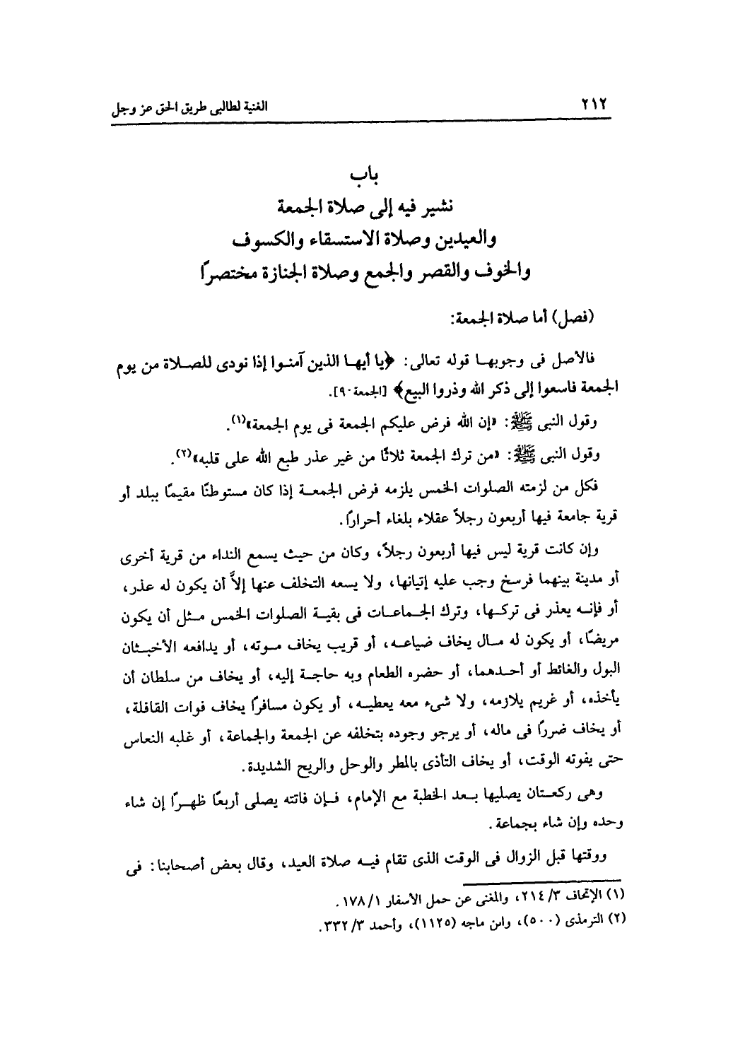 باب نشير فيه إلى صلاة الجمعة والعيدين وصلاة الاستسقاء والكسوف والخوف والقصر والجمع وصلاة الجنازة مختصرًا