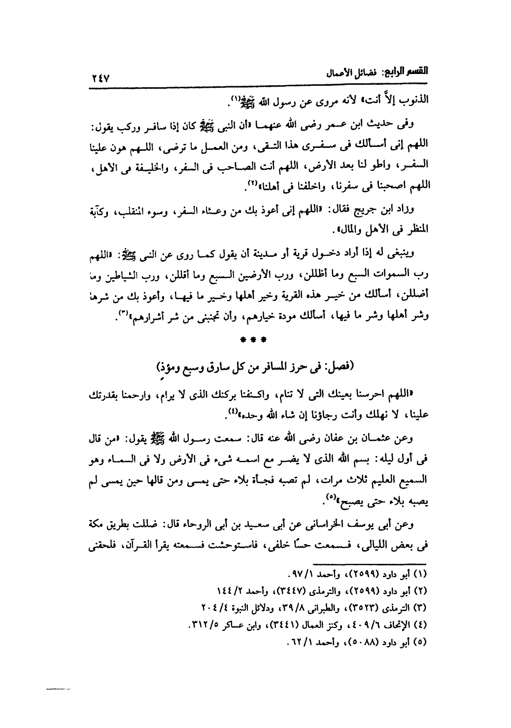 (فصل: في حرز المسافر من كل سارق وسبع ومؤذ)