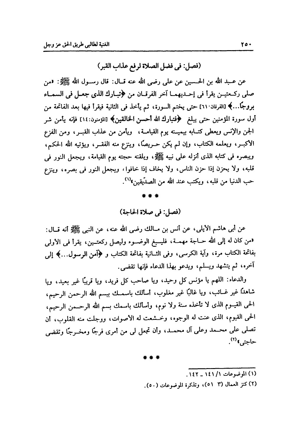 (فصل: في فضل الصلاة لرفع عذاب القبر)