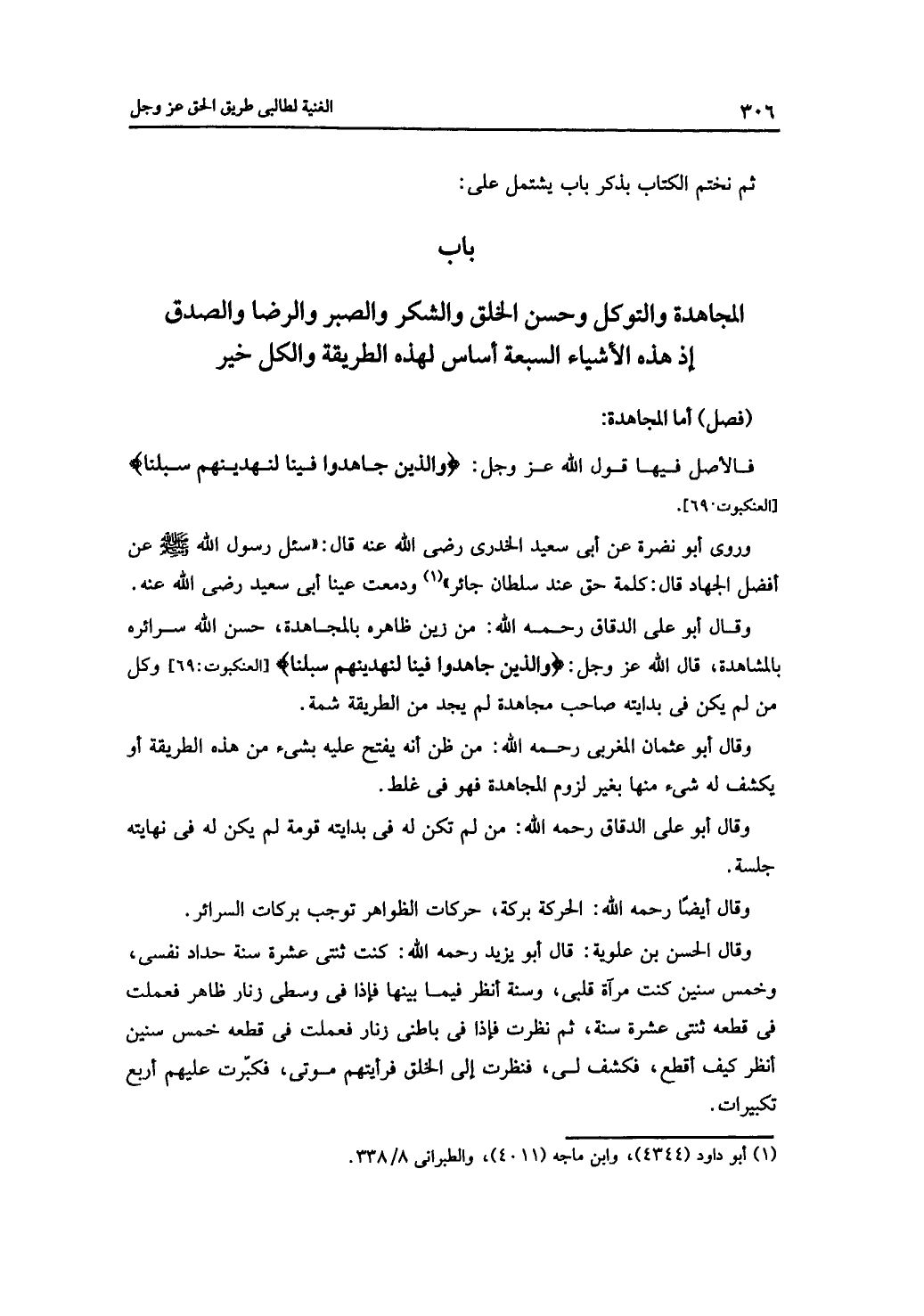 باب المجاهدة والتوكل وحسن الخلق والشكر والصبر والرضا والصدق
