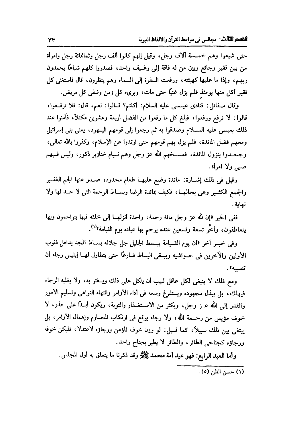 وأما العيد الرابع: فهو عيد أمة محمد -صلى الله عليه وسلم -وقد ذكرنا ما يتعلق به أول المجلس.