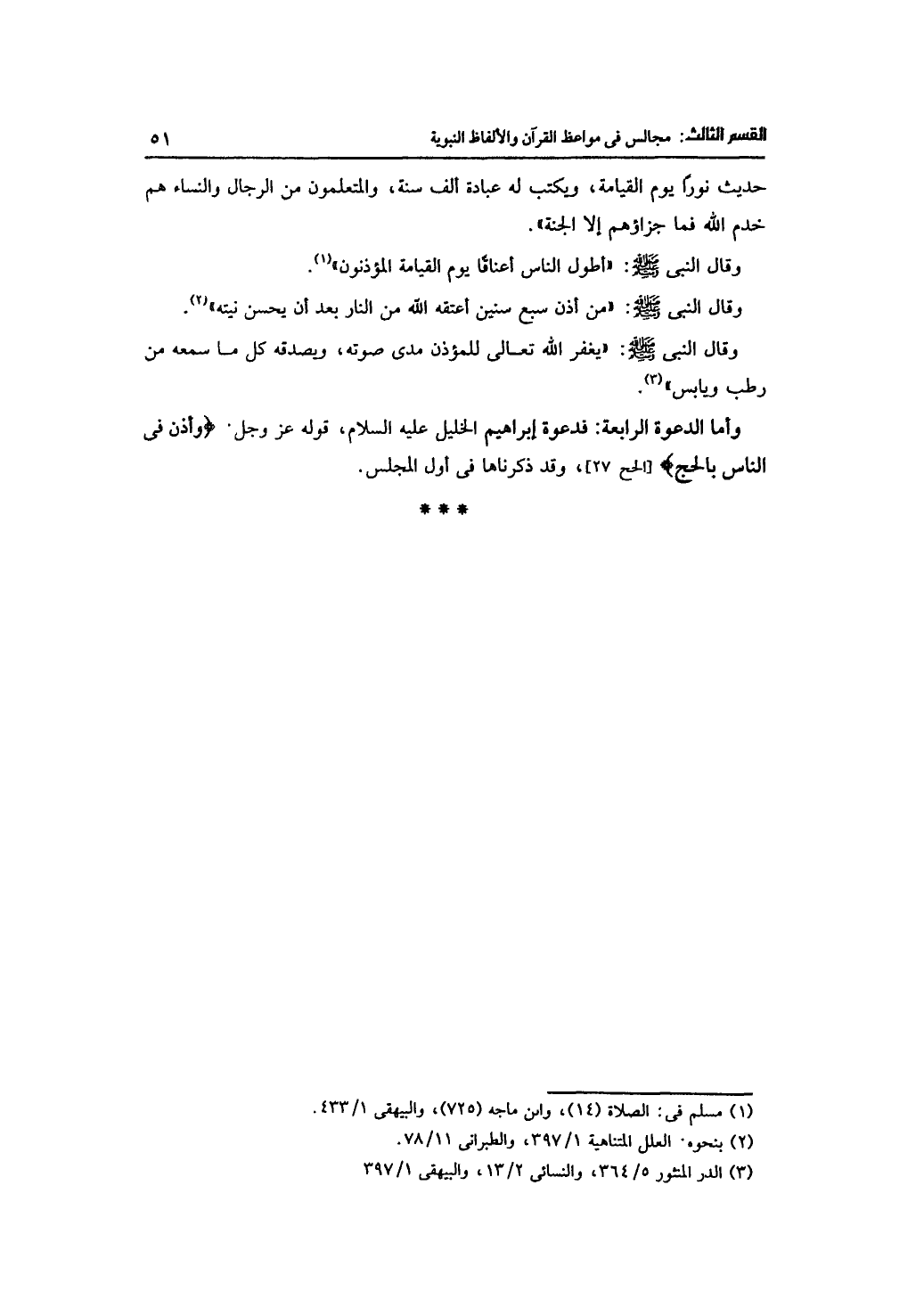 وقال النبي -صلى الله عليه وسلم -: "أطول الناس أعناقًا يوم القيامة المؤذنون".