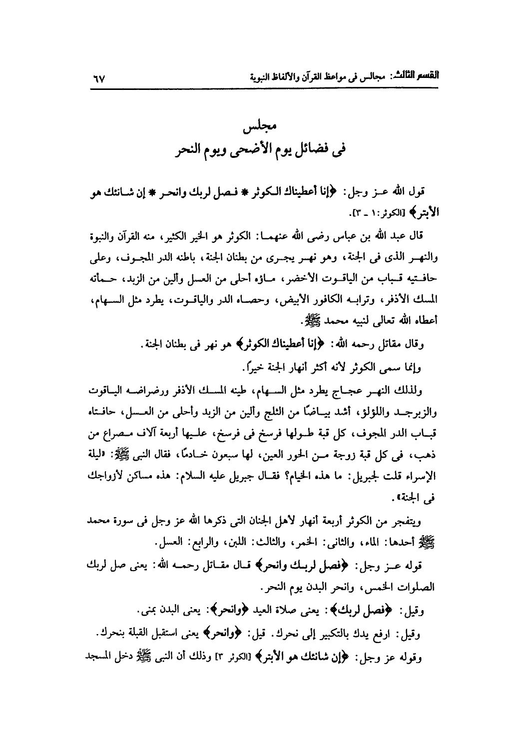 مجلس في فضائل يوم الأضحى ويوم النحر