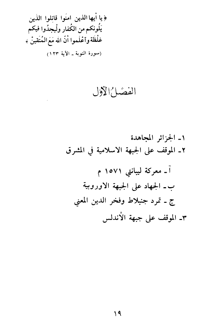 {يا أيها الذين آمنوا قاتلوا الذين يلونكم من الكفار وليجدوا فيكم غلظة واعلموا أن الله مع المتقين} (سورة التوبة - الآية 123).
