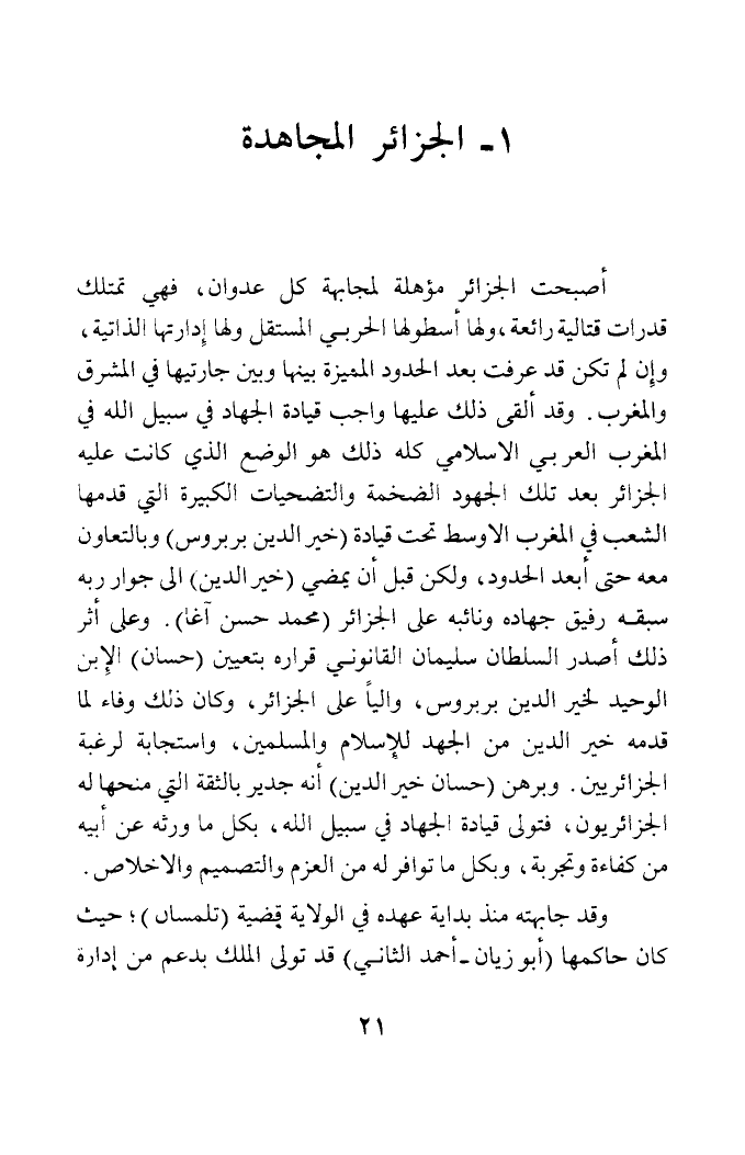 أصبحت الجزائر مؤهلة لمجابهة كل عدوان، فهي تمتلك قدرات قتالية رائعة، ولها أسطولها الحربي المستقل ولها إدارتها الذاتية، وإن لم تكن قد عرفت بعد الحدود المميزة بينها وبين جارتيها في المشرق والمغرب. وقد ألقى ذلك عليها واجب قيادة الجهاد في سبيل الله في المغرب العربي الإسلامي كله ذلك هو الوضع الذي كانت عليه الجزائر بعد تلك الجهود الضخمة والتضحيات الكبيرة التي قدمها الشعب في المغرب الأوسط تحت قيادة (خير الدين بربروس) وبالتعاون معه حتى أبعد الحدود، ولكن قبل أن يمضي (خير الدين) إلى جوار ربه سبقه رفيق جهاده ونائبه على الجزائر (محمد حسن آغا). وعلى أثر ذلك أصدر السلطان سليمان القانوني قراره بتعيين (حسان) الإبن الوحيد لخير الدين بربروس، واليا على الجزائر، وكان ذلك وفاء لما قدمه خير الدين من الجهد للإسلام والمسلمين، واستجابة لرغبة الجزائرين. وبرهن (حسان خير الدين) أنه جدير بالثقة التي منحها له الجزائريون، فتولى قيادة الجهاد في سبيل الله، بكل ما ورثه عن أبيه من كفاءة وتجربة، وبكل ما توافر له من العزم والتصميم والإخلاص.
