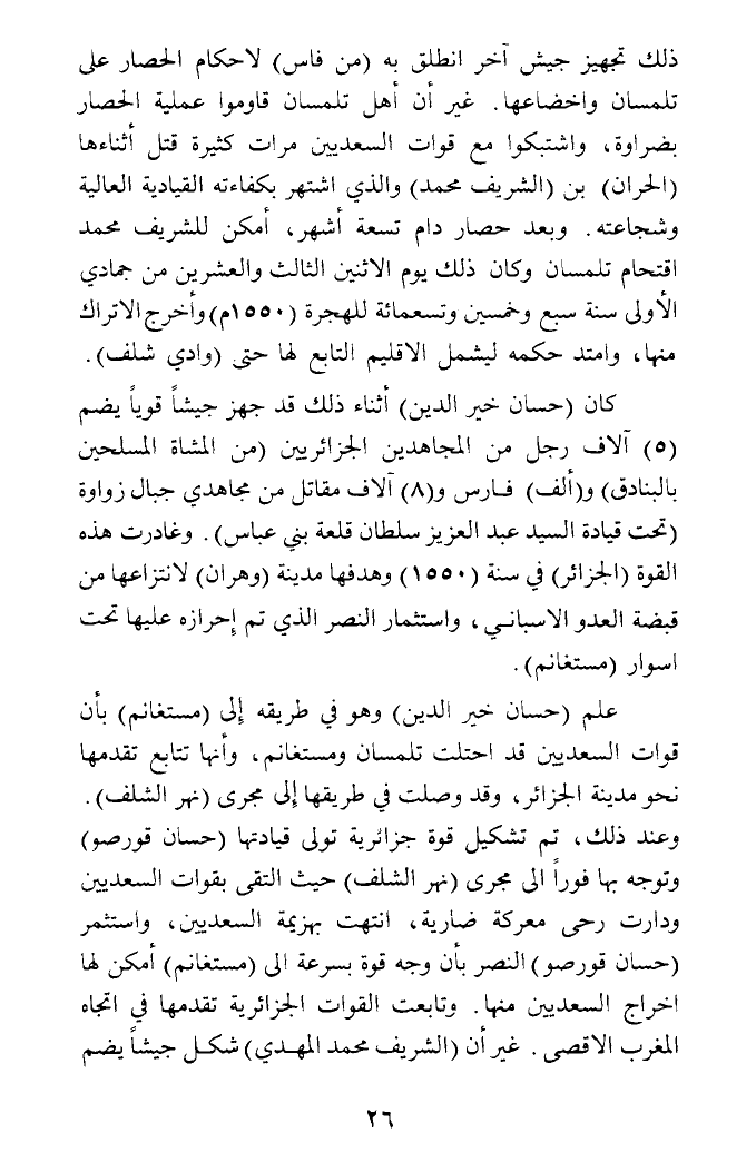 ذلك تجهيز جيش آخر انطلق به (من فاس) لإحكام الحصار على تلمسان وإخضاعها. غير أن أهل تلمسان قاوموا عملية الحصار بضراوة، واشتبكوا مع قوات السعديين مرات كثيرة قتل أثناءها (الحران) بن (الشريف محمد) والذي اشتهر بكفاءته القيادية العالية وشجاعته. وبعد حصار دام تسعة أشهر، أمكن للشريف محمد اقتحام تلمسان وكان ذلك يوم الإثنين الثالث والعشرين من جمادي الأولى سنة سبع وخمسين وتسمائة للهجرة (1550 م) وأخرج الأتراك منها، وامتد حكمه ليشمل الإقليم التابع لها حتى (وادي شلف).