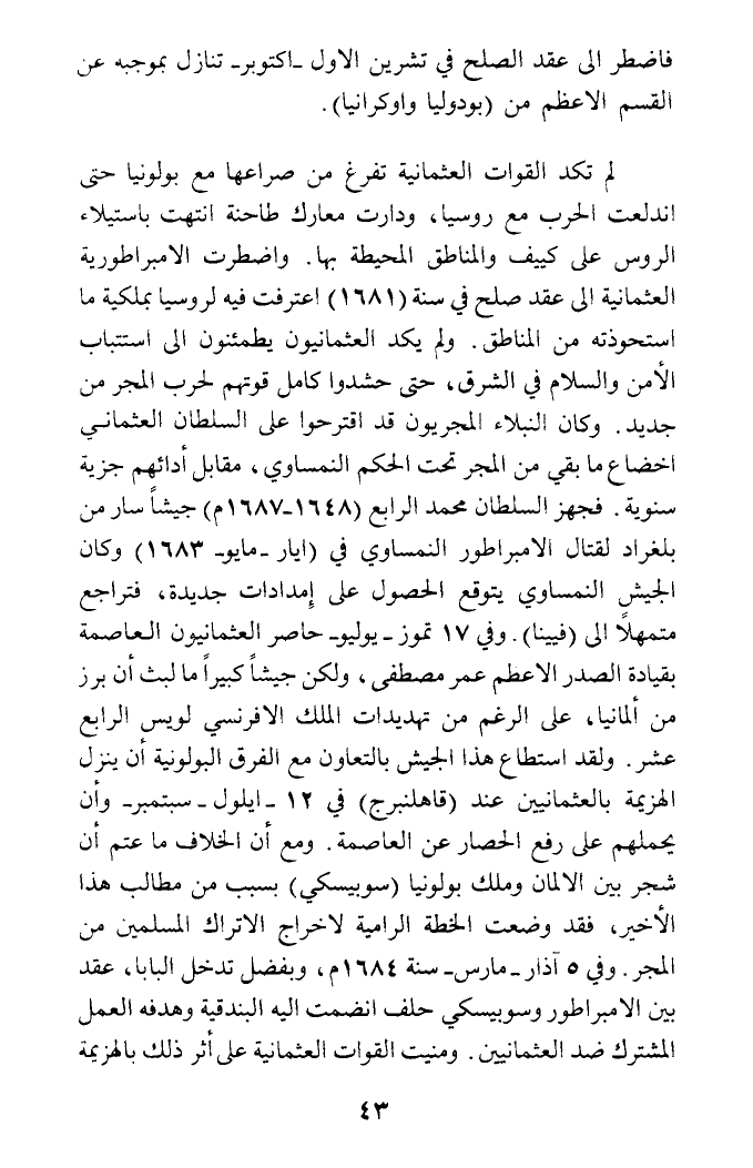 لم تكد القوات العثمانية تفرغ من صراعها مع بولونيا حتى اندلعت الحرب مع روسيا، ودارت معارك طاحنة انتهت باستيلاء الروس على كييف والمناطق المحيطة بها. واضطرت الإمبراطورية العثمانية إلى عقد صلح في سنة (1681) اعترفت فيه لروسيا بملكية ما استحوذته من المناطق. ولم يكد العثمانيون يطمئنون إلى استتباب الأمن والسلام في الشرق، حتى حشدوا كامل قوتهم لحرب المجر من جديد. وكان النبلاء المجريون قد اقترحوا على السلطان العثماني إخضاع ما بقي من المجر تحت الحكم النمساوي، مقابل أدائهم جزية سنوية. فجهز السلطان محمد الرابع (1648 - 1687 م) جيشا سار من بلغراد لقتال الإمبراطور النمساوي في (أيار - مايو - 1683) وكان الجيش النمساوي يتوقع الحصول على إمدادات جديدة، فتراجع متمهلا إلى (فيينا). وفي 17 تموز - يوليو - حاصر العثمانيون العاصمة بقيادة الصدر الأعطم عمر مصطفى، ولكن جيشا كبيرا ما لبث أن برز من ألمانيا، على الرغم من تهديدات الملك الإفرنسي لويس الرابع عشر. ولقد استطاع هذا الجيش بالتعاون مع الفرق البولونية أن ينرل الهزيمة بالعثمانيين عند (قاهلنبرج) في 12 - أيلول - سبتمبر - وأن يحملهم على رفع الحصار عن العاصمة. ومع أن الخلاف ما عتم أن شجر ببين الألمان وملك بولونيا (سوبيسكي) بسبب من مطالب هذا الأخير، فقد وضعت الخطة الرامية لإخراج الأتراك المسلمين من المجر. وفي 5 آذار - مارس - سنة 1684م، وبفضل تدخل البابا، عقد بين الإمبراطور وسوبيسكي حلف انضمت إليه البندقية وهدفه العمل المشترك ضد العثمانيين. ومنيت القوات العثمانية على أثر ذلك بالهزيمة