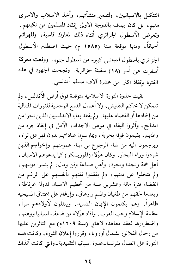 بقيت جذوة الثورة الإسلامية متوقدة فوق أرض الأندلس، ولم تتمكن لا محاكم التفتيش، ولا أعمال القمع الوحشية للثورات المتتالية من إخمادها أو القضاء عليها. ولم يفقد بقايا الأندلسيين الذين نجوا من المذابح، وآثروا البقاء في موطن الأجداد، الأمل في إنقاذ جزء من وطنهم، يقيمون فوقه بحرية، ويمارسون عباداتهم بدون قهر على ثراه، ويرجعون إليه من شاء الرجوع من أبناء عمومتهم وإخوانهم الذين شردوا وراء البحار. وكان هؤلاء (الموريسكو) كما يدعوهم الإسبان، أهل همة ونجدة ونخوة، وأهل صناعة وفن ومال، لم ينسوا دولتهم، ولم يتخلوا عن دينهم، ولم يفقدوا ثقتهم بأنفسهم على الرغم من إنقضاء فترة مائة وعشرين سنة من تحطيم الإسبان لدولة غرناطة، وبعدما لحقهم من طغيان وظلم وإرهاق، وإرغام على اعتناق المسيحية ظاهرا، وهم يكتمون الإيمان الشديد، وينقلون لأولادهم سرا، عظمة الإسلام وحب العرب. وأفاد هؤلاء من ضعف إسبانيا ووهنها، واضطرارها لعقد معاهدة لاهاي (سنة 1609م) مع الثائرين عليها من رجال الفلانور بشمال أوروبا، وقرروا إعلان الثورة، وكانت هذه الثورة على اتصال بفرنسا - عدوة إسبانيا التقليدية - والتي كانت آنذاك