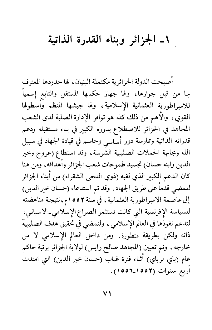أصبحت الدولة الجزائرية مكتملة البنيان، لها حدودها المعترف بها من قبل جوارها، ولها جهاز حكمها المستقل والتابع إسميا للإمبراطررية العثمانية الإسلامية، ولها جيشها المنظم وأسطولها القوي، والأهم من ذلك كله هو توافر الإدارة الصلبة لدى الشعب المجاهد في الجزائر للاضطلاع بدوره الكبير في بناء مستقبله ودعم قدراته الذاتية وممارسة دور أساسي وحاسم في قيادة الجهاد في سبيل الله ومجابهة الحملات الصليبية الشرسة، وقد استطاع (عروج وخير الدين وابنه حسان) تجسيد طموحات شعب الجزائر وأهدافه، ومن هنا كان الدعم الكبير الذي لقيه (ذوي اللحى الشقراء) من أبناء الجزائر للمضي قدما على طريق الجهاد. وقد تم استدعاء (حسان خير الدين) إلى عاصمة الإمبراطورية العثمانية، في سنة 1552م، نتيجة مناهضته للسياسة الإفرنسية التي كانت تستثمر الصراع الإسلامي - الإسباني، لتدعم نفوذها في العالم الإسلامي، ولتمضي في تحقيق هدف الصليبية ذاته ولكن بطريقة متطورة. ومن داخل العالم الإسلامي لا من خارجه، وتم تعيين (المجاهد صالح رايس) لولاية الجزائر برتبة حاكم عام (باي لرباي) أثناء فترة غياب (حسان خير الدين) التي امتدت أربع سنوات (1552 - 1056).