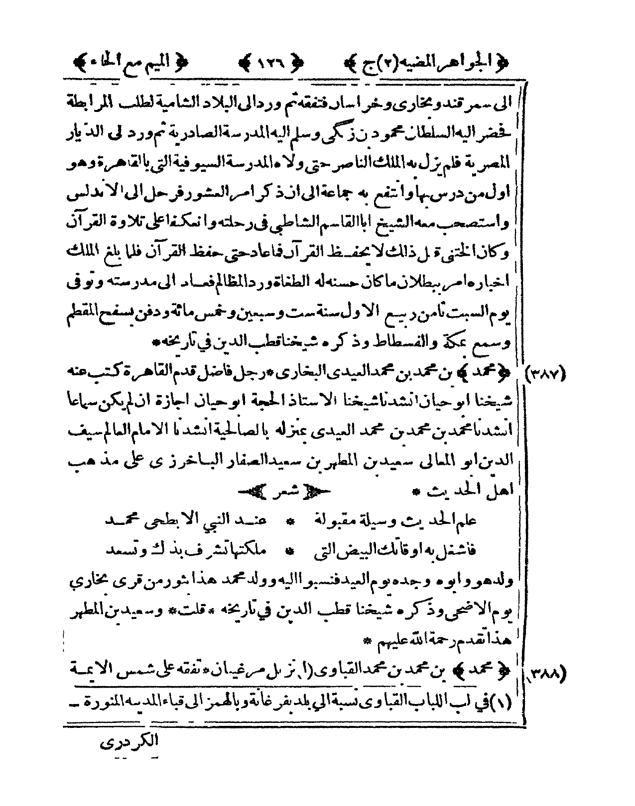 388 - مُحَمَّد بن مُحَمَّد بن مُحَمَّد القباوي نزل مرغينان تفقه على شمس الأيمة