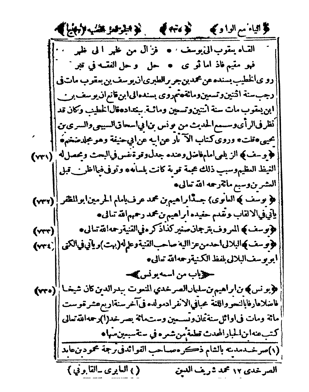 733 - يُوسُف الْمَعْرُوف بترجمان صَغِير كَذَا ذكره فى الْقنية رَحمَه الله تَعَالَى