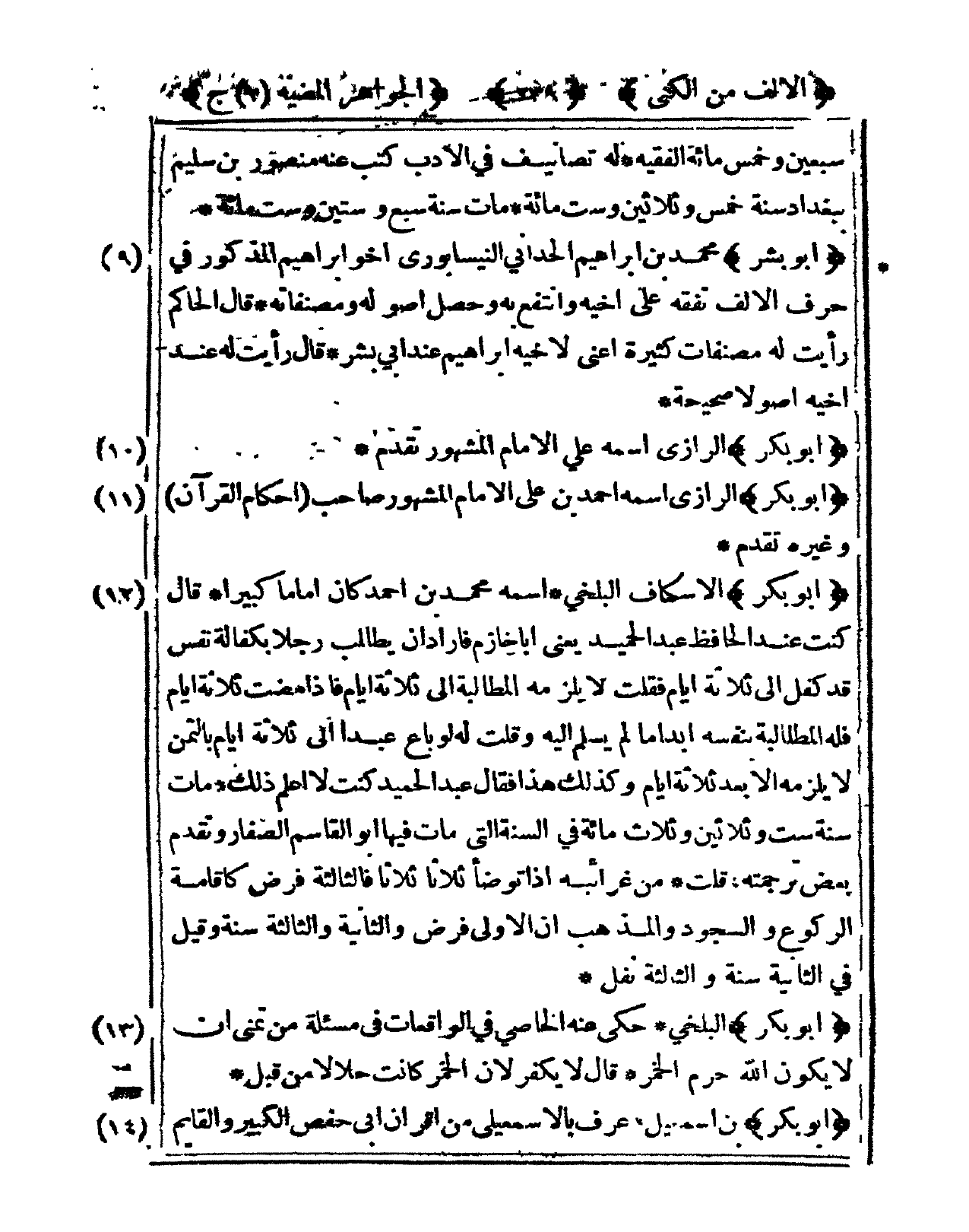 11 - أَبُو بكر الرَّازِيّ اسْمه أَحْمد بن عَليّ الإِمَام الْمَشْهُور صَاحب أَحْكَام الْقُرْآن وَغَيره تقدم