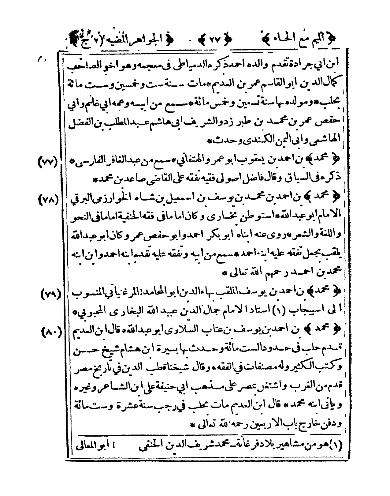 79 - مُحَمَّد بن أَحْمد بن يُوسُف الملقب بهاء الدّين أَبُو المحامد المرغنياني الْمَنْسُوب إِلَى إسبيجاب أستاذ الإِمَام جمال الدّين عبيد الله البُخَارِيّ المحبوبي