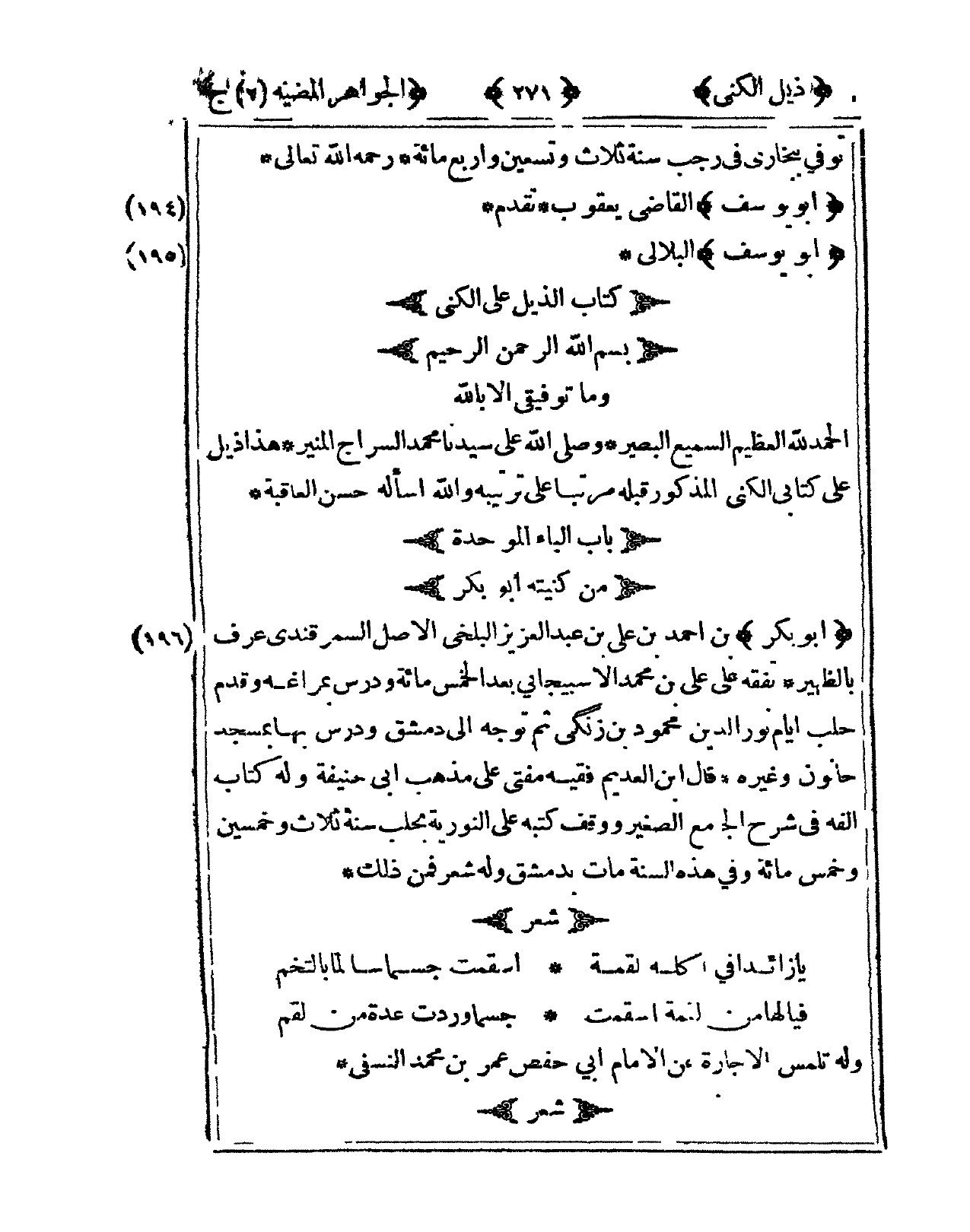 195 - أَبُو يُوسُف البلالي = كتاب الذيل على الكنى = بِسم الله الرَّحْمَن الرَّحِيم