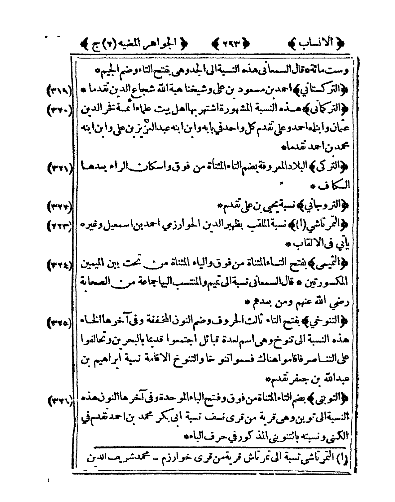 320 - التركماني هَذِه النِّسْبَة الْمَشْهُورَة اشْتهر بهَا أهل بَيت عُلَمَاء أَئِمَّة فَخر الدّين عُثْمَان وابناه أَحْمد وَعلي تقدم كل وَاحِد فى بَابه وَابْن ابْنه عبد الْعَزِيز بن عَليّ وَابْن ابْنه مُحَمَّد بن أَحْمد تقدما