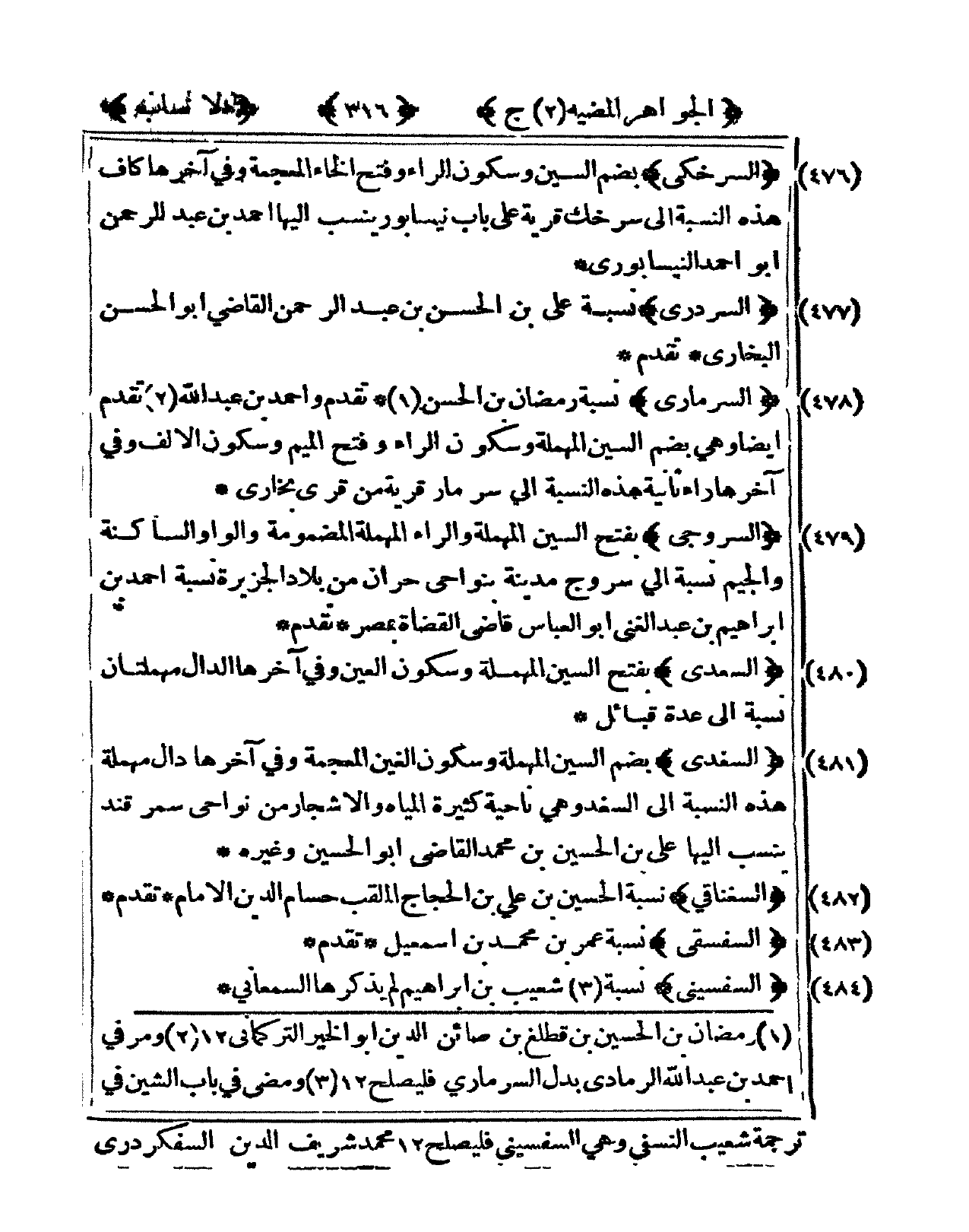 480 - السَّعْدِيّ بِفَتْح السِّين الْمُهْملَة وَسُكُون الْعين وفى آخرهَا الدَّال مهملتان نِسْبَة إِلَى عدَّة قبائل