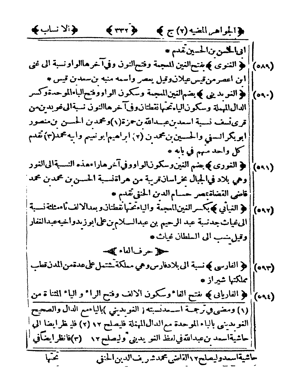 593 - الْفَارِسِي نِسْبَة إِلَى بِلَاد فَارس وهى مملكة تشْتَمل على عدَّة من المدن قطب مملكتها شيراز