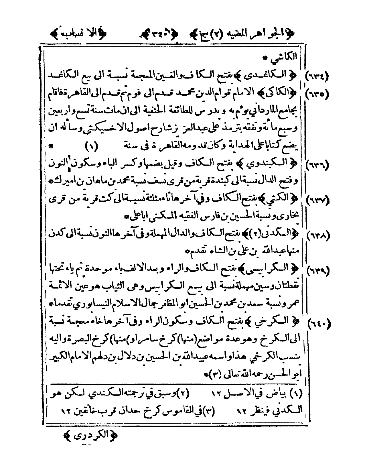 636 - الكبندوي بِفَتْح الْكَاف وَقيل بضَمهَا وَكسر الْبَاء وَسُكُون النُّون وَفتح الدَّال نِسْبَة إِلَى كبندة قَرْيَة من قرى نسف نِسْبَة مُحَمَّد بن ماهان بن أميرك