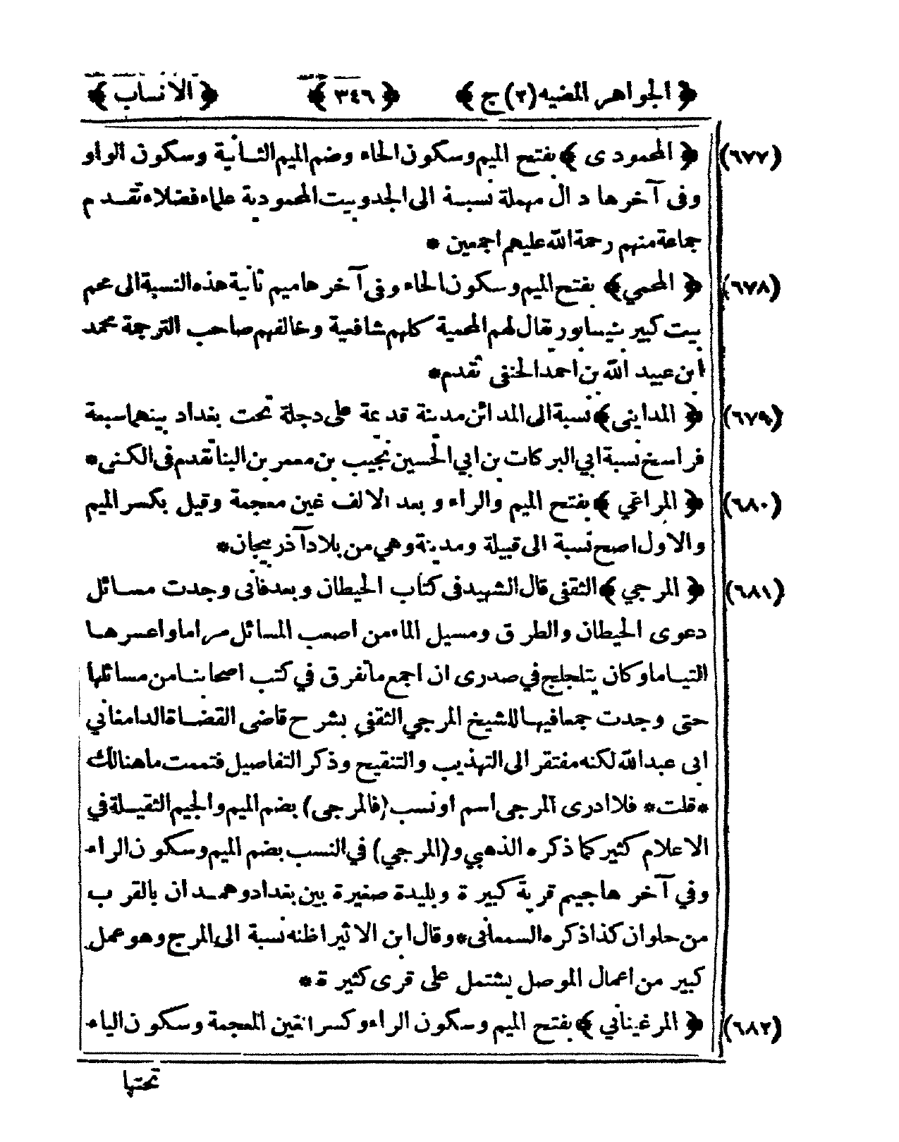 680 - المراغي بِفَتْح الْمِيم وَالرَّاء وَبعد الْألف غين مُعْجمَة وَقيل بِكَسْر الْمِيم وَالْأول أصح نِسْبَة إِلَى قَبيلَة ومدينة وهى من بِلَاد آذربيجان