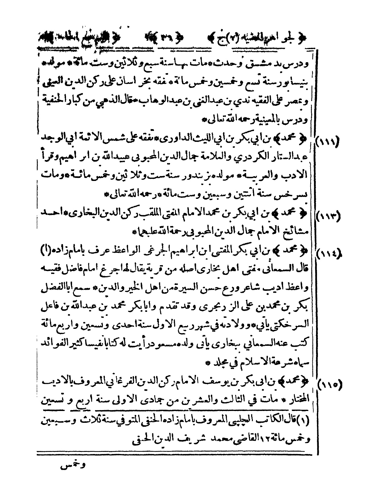 113 - مُحَمَّد بن أبي بكر بن مُحَمَّد الإِمَام الْمُفْتِي الملقب ركن الدّين البُخَارِيّ أحد مشائخ الإِمَام جمال الدّين المحبوبي رَحْمَة الله عَلَيْهِمَا