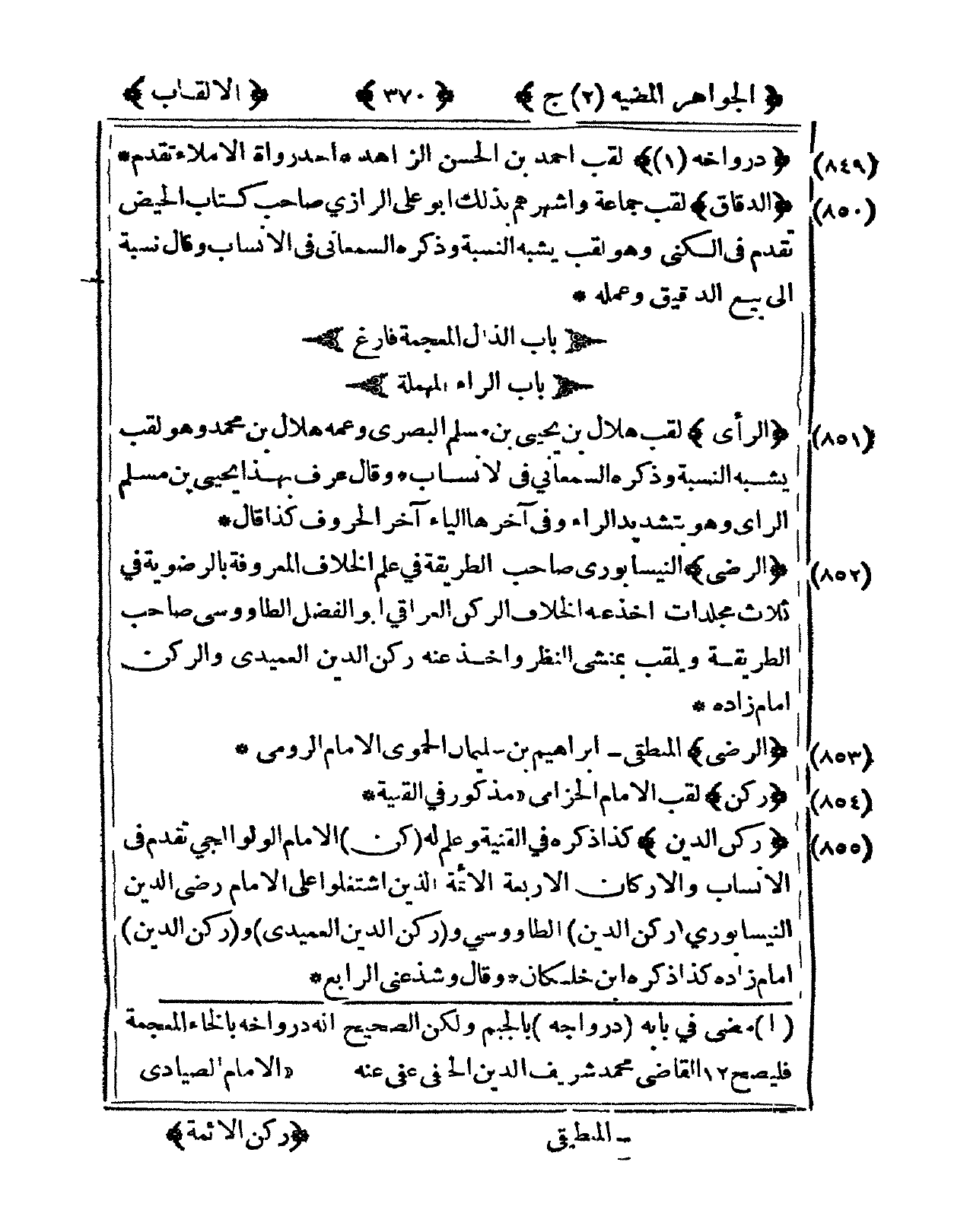 854 - ركن لقب الإِمَام الْحزَامِي مَذْكُور فى الْقنية