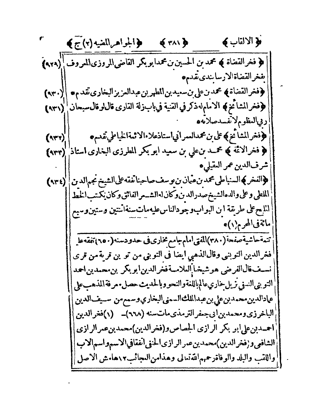 932 - فَخر المشائخ عَليّ بن مُحَمَّد العمراني أستاذ عَلَاء الْأَئِمَّة الخياطي تقدم