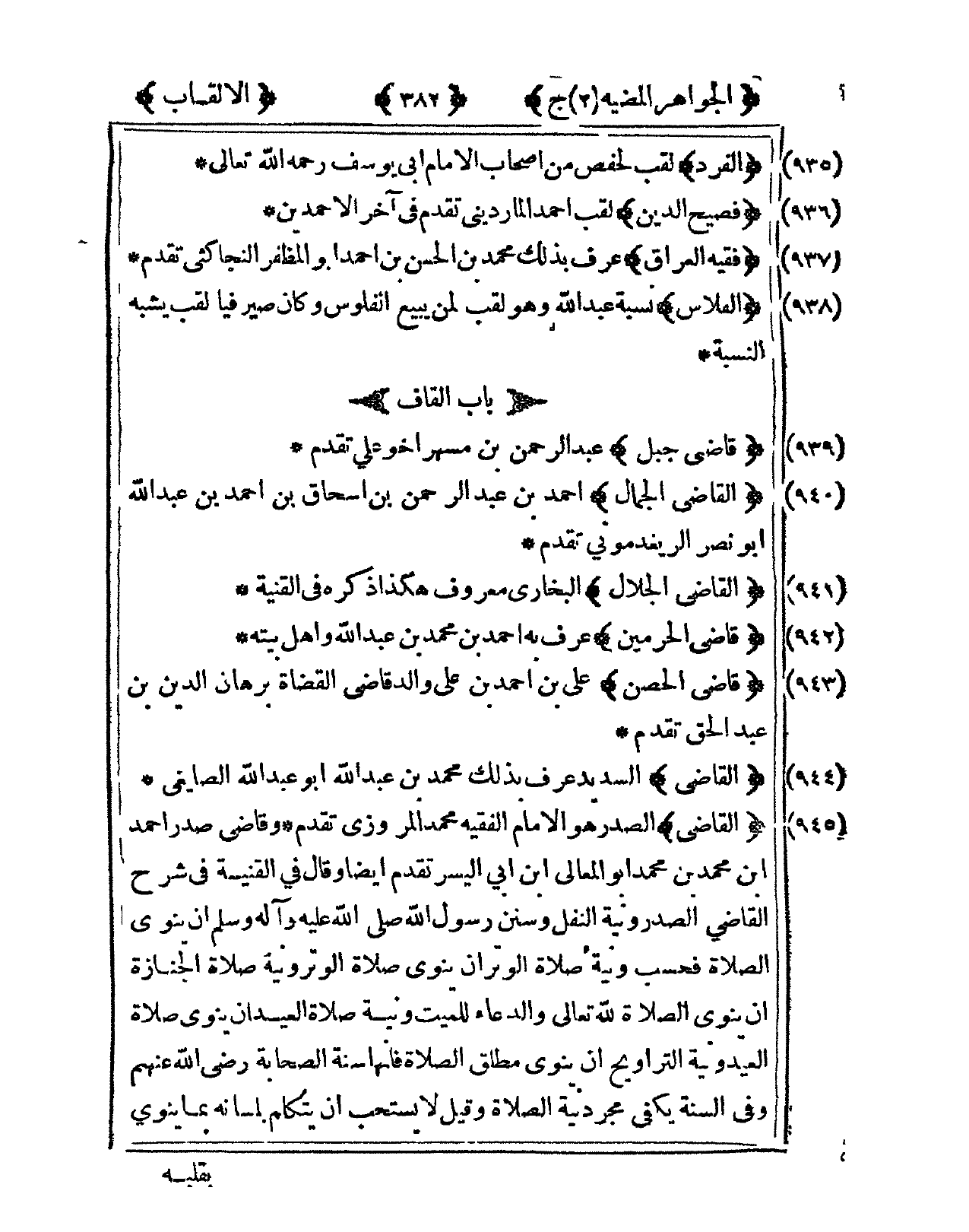 941 - القَاضِي الْجلَال البُخَارِيّ مَعْرُوف هَكَذَا ذكره فى الْقنية