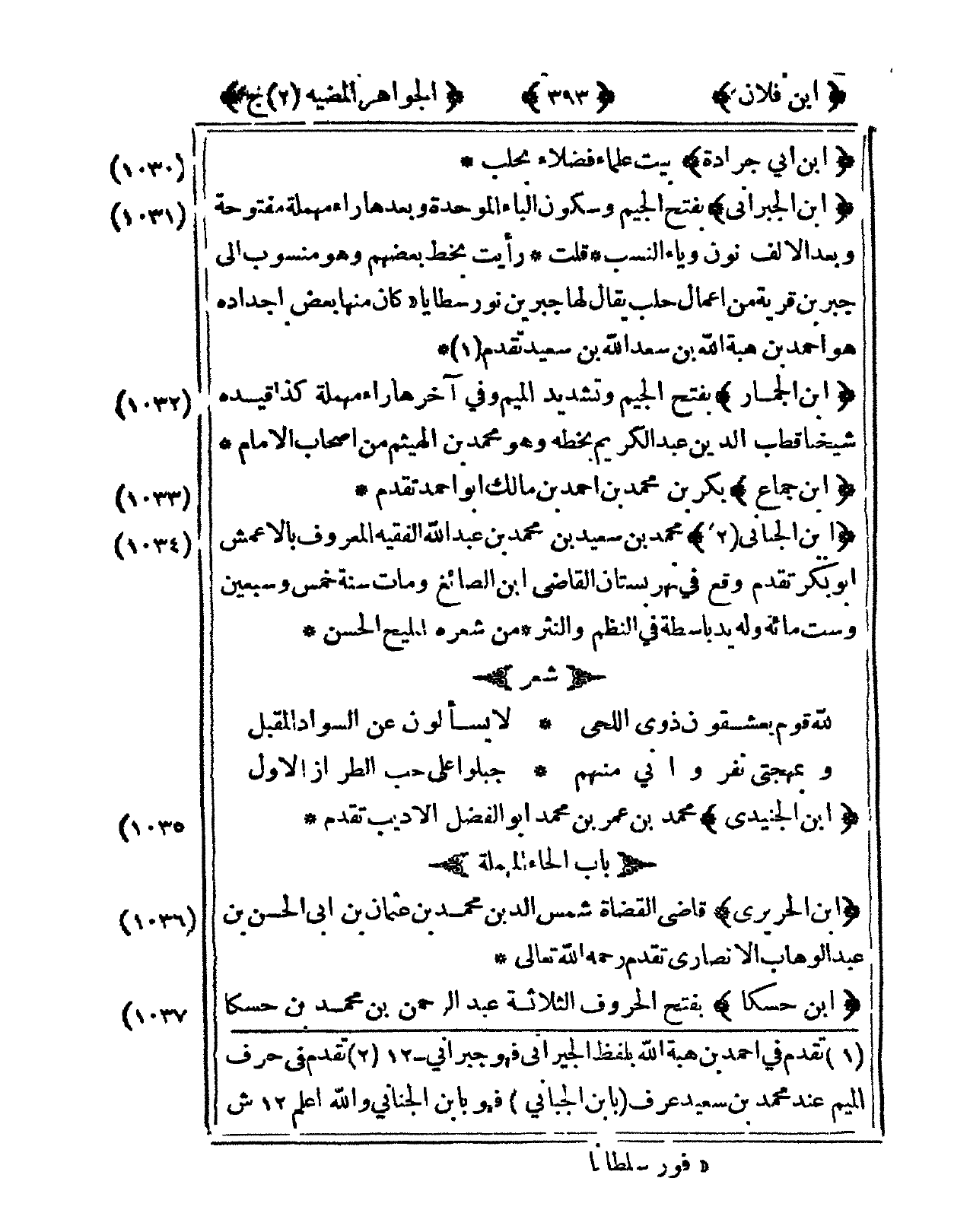 1032 - ابْن الْجمار بِفَتْح الْجِيم وَتَشْديد الْمِيم وفى آخرهَا رَاء مُهْملَة كَذَا قَيده شَيخنَا قطب الدّين عبد الْكَرِيم بِخَطِّهِ وَهُوَ مُحَمَّد بن الْهَيْثَم من أَصْحَاب الإِمَام