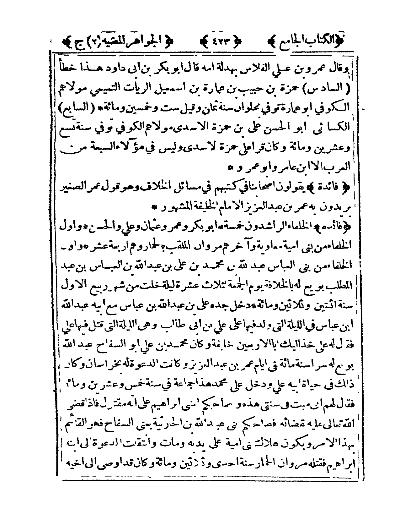 فَائِدَة يَقُولُونَ أَصْحَابنَا فِي كتبهمْ فِي مسَائِل الْخلاف وَهُوَ قَول عمر الصَّغِير يُرِيدُونَ بِهِ عمر بن عبد العزيز الإِمَام الْخَلِيفَة الْمَشْهُور