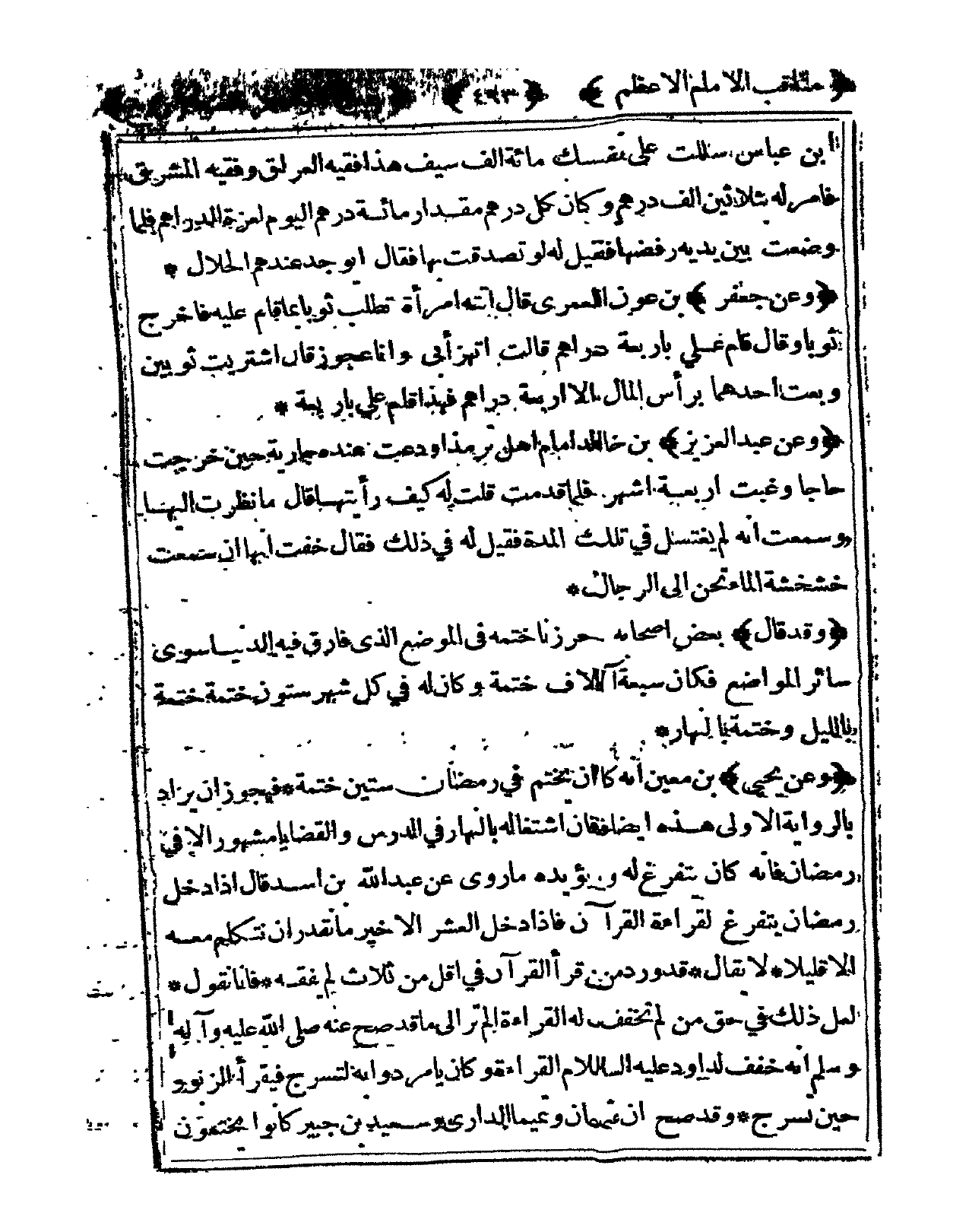 وَقد قَالَ بعض أَصْحَابه حرزنا خَتمه فى الْموضع الذى فَارق فِيهِ الدُّنْيَا سوى سَائِر الْمَوَاضِع فَكَانَ سَبْعَة آلَاف ختمة وَكَانَ لَهُ فى كل شهر سِتُّونَ ختمة ختمة بِاللَّيْلِ وختمة بِالنَّهَارِ