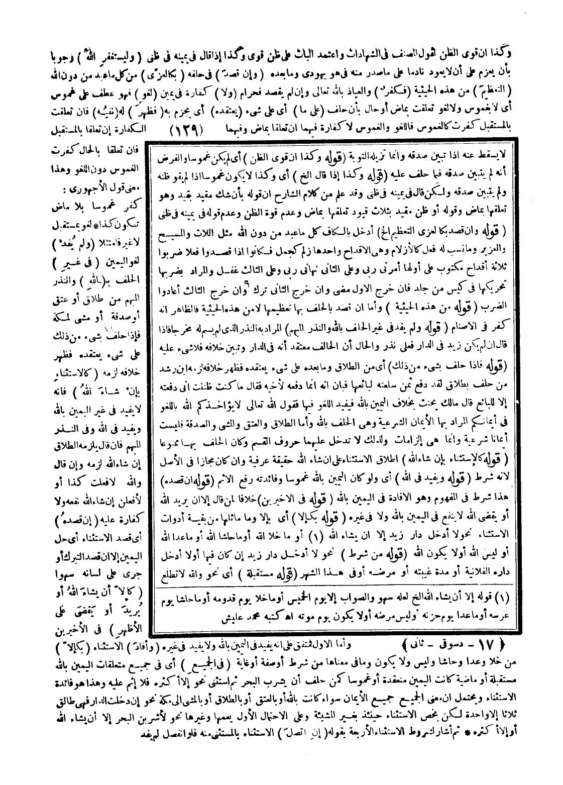 (قَوْلُهُ: وَلَمْ يُفِدْ فِي غَيْرِ الْحَلِفِ بِاَللَّهِ وَالنَّذْرِ الْمُبْهَمِ) الْمُرَادُ بِهِ النَّذْرُ الَّذِي لَمْ يُسَمِّ لَهُ مَخْرَجًا فَإِذَا قَالَ إنْ لَمْ يَكُنْ زَيْدٌ فِي الدَّارِ فَعَلَيَّ نَذْرٌ، وَالْحَالُ أَنَّ الْحَالِفَ مُعْتَقِدٌ أَنَّهُ فِي الدَّارِ وَتَبَيَّنَ خِلَافُهُ فَلَا شَيْءَ عَلَيْهِ.