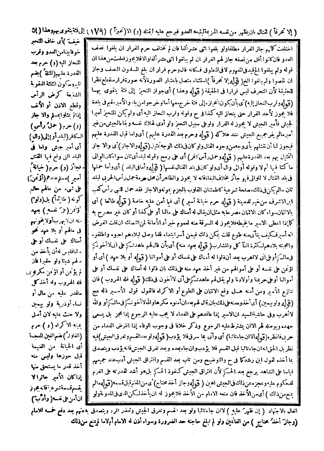 ـــــــــــــــــــــــــــــQاخْتَلَفَتْ كَلِمَتُهُمْ جَازَ الْفِرَارُ مُطْلَقًا، وَلَوْ بَلَغُوا اثْنَيْ عَشَرَ أَلْفًا فَإِنْ لَمْ تَخْتَلِفْ حُرِّمَ الْفِرَارُ إنْ بَلَغُوا نِصْفَ الْعَدُوِّ فَإِنْ كَانُوا أَقَلَّ مِنْ نِصْفِهِ جَازَ لَهُمْ الْفِرَارُ إنْ لَمْ يَبْلُغُوا اثْنَيْ عَشَرَ أَلْفًا، وَإِلَّا فَلَا يَجُوزُ فَعَلِمْتَ مِنْ هَذَا أَنَّ قَوْلَهُ، وَلَمْ يَبْلُغُوا إلَخْ قَيْدٌ فِي الْمَفْهُومِ لَا فِي الْمَنْطُوقِ فَكَأَنَّهُ قَالَ وَحُرِّمَ فِرَارٌ إنْ بَلَغَ الْمُسْلِمُونَ النِّصْفَ وَجَازَ إنْ نَقَصُوا وَلَمْ يَبْلُغُوا إلَخْ (قَوْلُهُ: إلَّا تَحَرُّفًا) اسْتِثْنَاءٌ مُتَّصِلٌ بِاعْتِبَارِ الصُّورَةِ؛ لِأَنَّهُ صُورَةُ فِرَارٍ مُنْقَطِعٍ نَظَرًا لِلْحَقِيقَةِ؛ لِأَنَّ التَّحَرُّفَ لَيْسَ فِرَارًا فِي الْحَقِيقَةِ (قَوْلُهُ: وَهَذَا) أَيْ جَوَازُ التَّحَيُّزِ إلَى فِئَةٍ يَتَقَوَّى بِهَا (قَوْلُهُ: وَقَرُبَ الْمُنْحَازُ إلَيْهِ) أَيْ بِأَنْ يَكُونَ انْحِيَازُهُ إلَى فِئَةٍ خَرَجَ مَعَهَا أَمَّا لَوْ خَرَجُوا مِنْ بَلَدٍ وَالْأَمِيرُ مُقِيمٌ فِي بَلْدَةٍ فَلَا يَجُوزُ لِأَحَدٍ الْفِرَارُ حَتَّى يَنْحَازَ إلَيْهِ كَذَا فِي ح وَقَوْلُهُ: وَقَرُبَ الْمُنْحَازُ إلَيْهِ أَيْ، وَلَمْ يَكُنْ الْمُتَحَيِّزُ أَمِيرًا لِجَيْشٍ فَأَمِيرُ الْجَيْشِ لَا يَجُوزُ لَهُ الْفِرَارُ، وَلَوْ عَلَى سَبِيلِ التَّحَيُّزِ وَلَوْ أَدَّى لِهَلَاكِ نَفْسِهِ وَبَقَاءِ الْجَيْشِ مِنْ غَيْرِ أَمِيرٍ مَا لَمْ يَفِرَّ جَمِيعُ الْجَيْشِ عِنْدَ هَلَاكِهِ (قَوْلُهُ: وَحُرِّمَ بَعْدَ الْقُدْرَةِ عَلَيْهِمْ) أَيْ، وَأَمَّا قَبْلَ الْقُدْرَةِ عَلَيْهِمْ فَيَجُوزُ لَنَا أَنْ نَقْتُلَهُمْ بِأَيِّ وَجْهٍ مِنْ وُجُوهِ الْقَتْلِ، وَلَوْ كَانَ فِي ذَلِكَ الْوَجْهِ تَمْثِيلٌ. (قَوْلُهُ: وَإِلَّا جَازَ) أَيْ، وَإِلَّا جَازَ التَّمْثِيلُ بِهِمْ بَعْدَ الْقُدْرَةِ عَلَيْهِمْ.