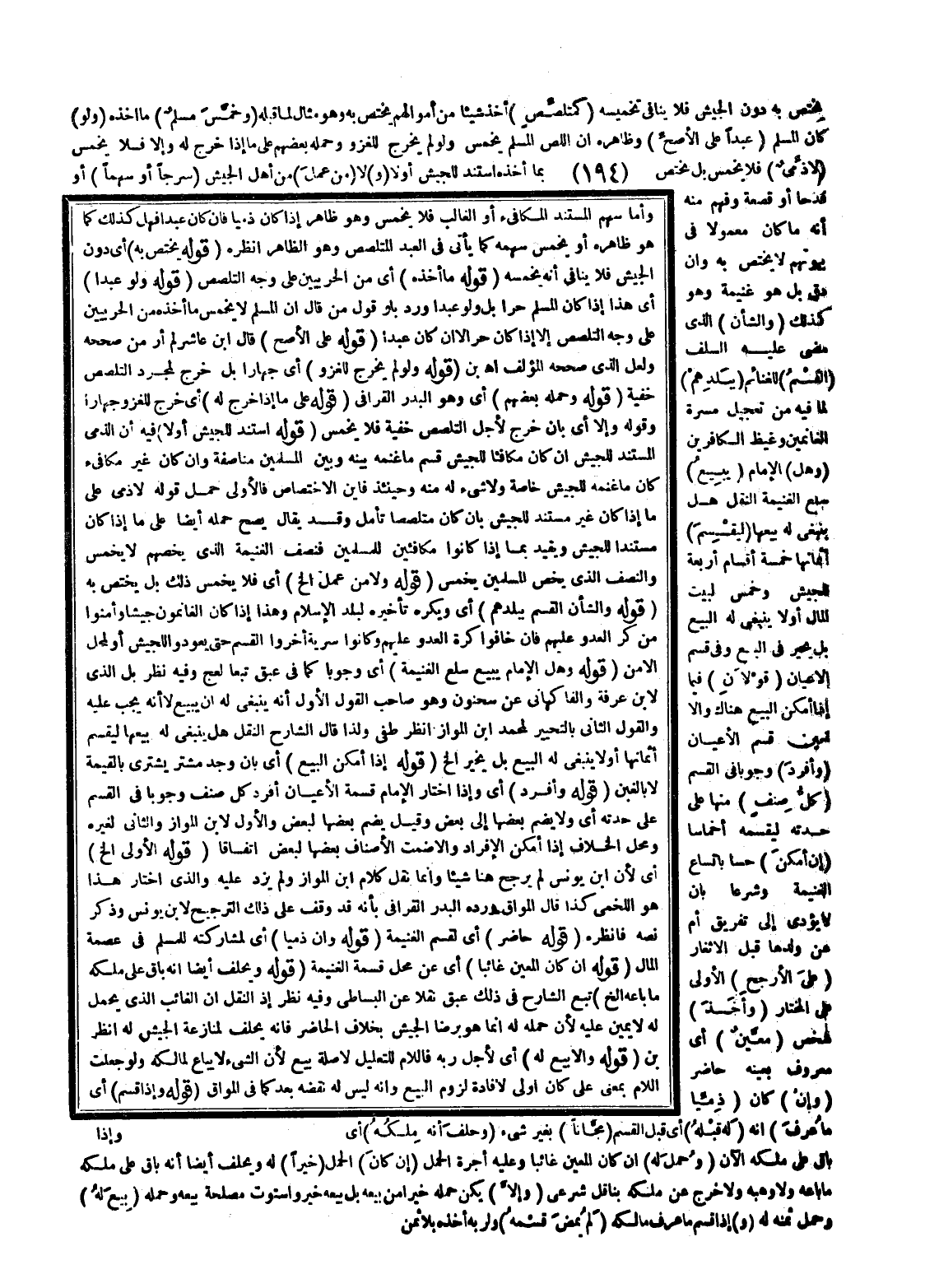 ـــــــــــــــــــــــــــــQوَأَمَّا سَهْمُ الْمُسْتَنِدِ الْمُكَافِئِ أَوْ الْغَالِبِ فَلَا يُخَمَّسُ، وَهُوَ ظَاهِرٌ إذَا كَانَ ذِمِّيًّا فَإِنْ كَانَ عَبْدًا فَهَلْ كَذَلِكَ كَمَا هُوَ ظَاهِرُهُ أَوْ يُخَمَّسُ سَهْمُهُ كَمَا يَأْتِي فِي الْعَبْدِ الْمُتَلَصِّصِ، وَهُوَ الظَّاهِرُ اُنْظُرْهُ.