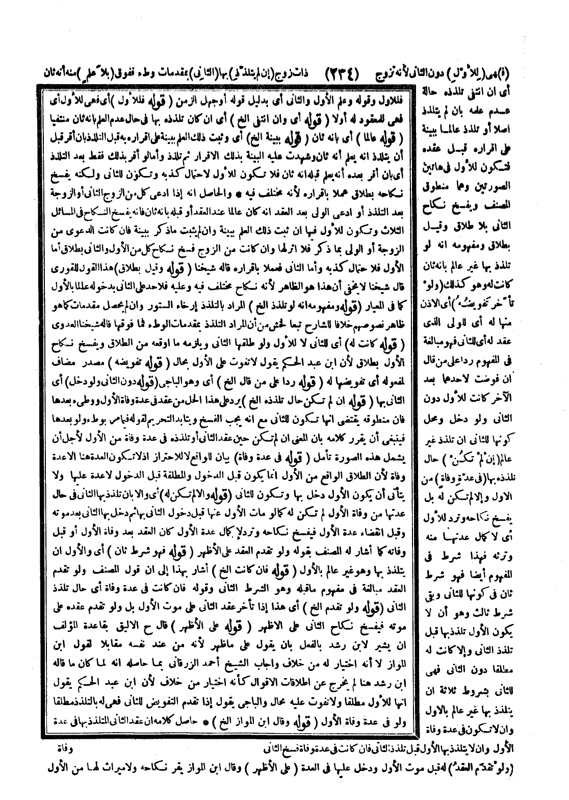 (قَوْلُهُ: فَهُوَ شَرْطٌ ثَانٍ) أَيْ وَالْأَوَّلُ أَنْ يَتَلَذَّذَ بِهَا وَهُوَ غَيْرُ عَالِمٍ بِالْأَوَّلِ (قَوْلُهُ: فَإِنْ كَانَتْ إلَخْ) أَشَارَ بِهَذَا إلَى أَنَّ قَوْلَ الْمُصَنِّفِ، وَلَوْ تَقَدَّمَ الْعَقْدُ مُبَالَغَةٌ فِي مَفْهُومِ مَا قَبْلَهُ وَهُوَ الشَّرْطُ الثَّانِي، وَقَوْلُهُ: فَإِنْ كَانَتْ فِي عِدَّةِ وَفَاةٍ أَيْ حَالَ تَلَذُّذِ الثَّانِي (قَوْلُهُ: وَلَوْ تَقَدَّمَ إلَخْ) أَيْ هَذَا إذَا تَأَخَّرَ عَقْدُ الثَّانِي عَلَى مَوْتِ الْأَوَّلِ بَلْ وَلَوْ تَقَدَّمَ عَقْدُهُ عَلَى مَوْتِهِ فَيُفْسَخُ نِكَاحُ الثَّانِي عَلَى الْأَظْهَرِ.