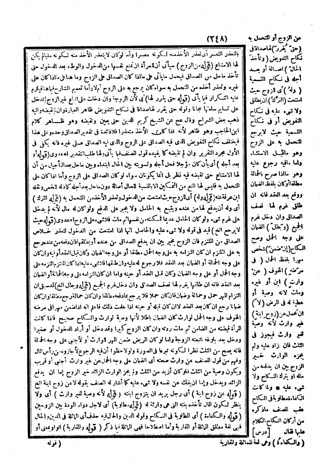 (قَوْلُهُ: مِنْ الزَّوْجِ) سَيَأْتِي أَنَّ لِلْمَرْأَةِ أَنْ تَمْنَعَ نَفْسَهَا مِنْ الدُّخُولِ وَالْوَطْءِ بَعْدَ الدُّخُولِ حَتَّى تَأْخُذَ مَا حَلَّ مِنْ الصَّدَاقِ فَيُحْمَلُ مَا يَأْتِي عَلَى مَا إذَا كَانَ الصَّدَاقُ عَلَى الزَّوْجِ وَمَا هُنَا عَلَى مَا إذَا كَانَ عَلَى غَيْرِهِ وَتَعَذَّرَ أَخْذُهُ مِنْ الْمُتَحَمِّلِ بِهِ سَوَاءٌ كَانَ يَرْجِعُ بِهِ عَلَى الزَّوْجِ أَمْ لَا، وَأَمَّا تَعْمِيمُ الشَّارِحِ فِيمَا هُنَا فَيَلْزَمُ عَلَيْهِ التَّكْرَارُ فِيمَا يَأْتِي.